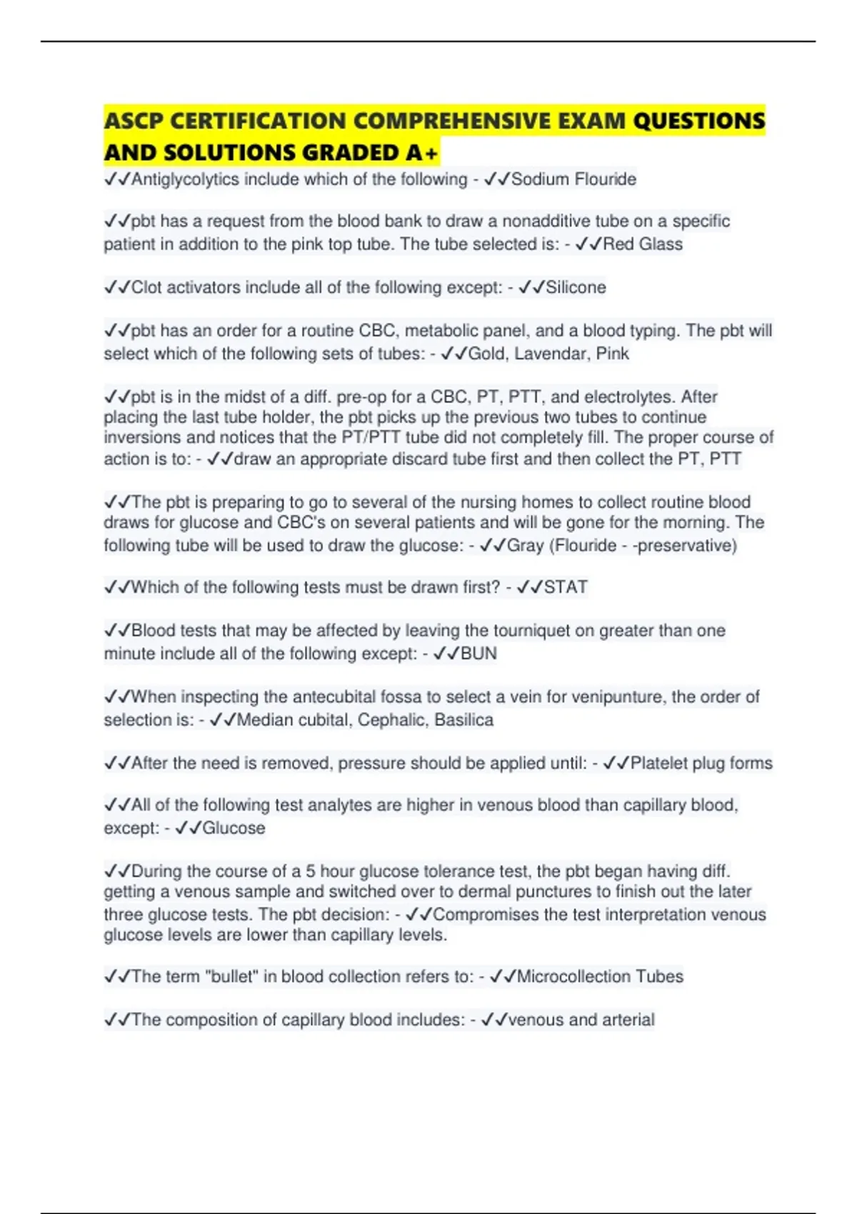 ✔✔Which of the following tests must be drawn first? - ✔✔STAT
