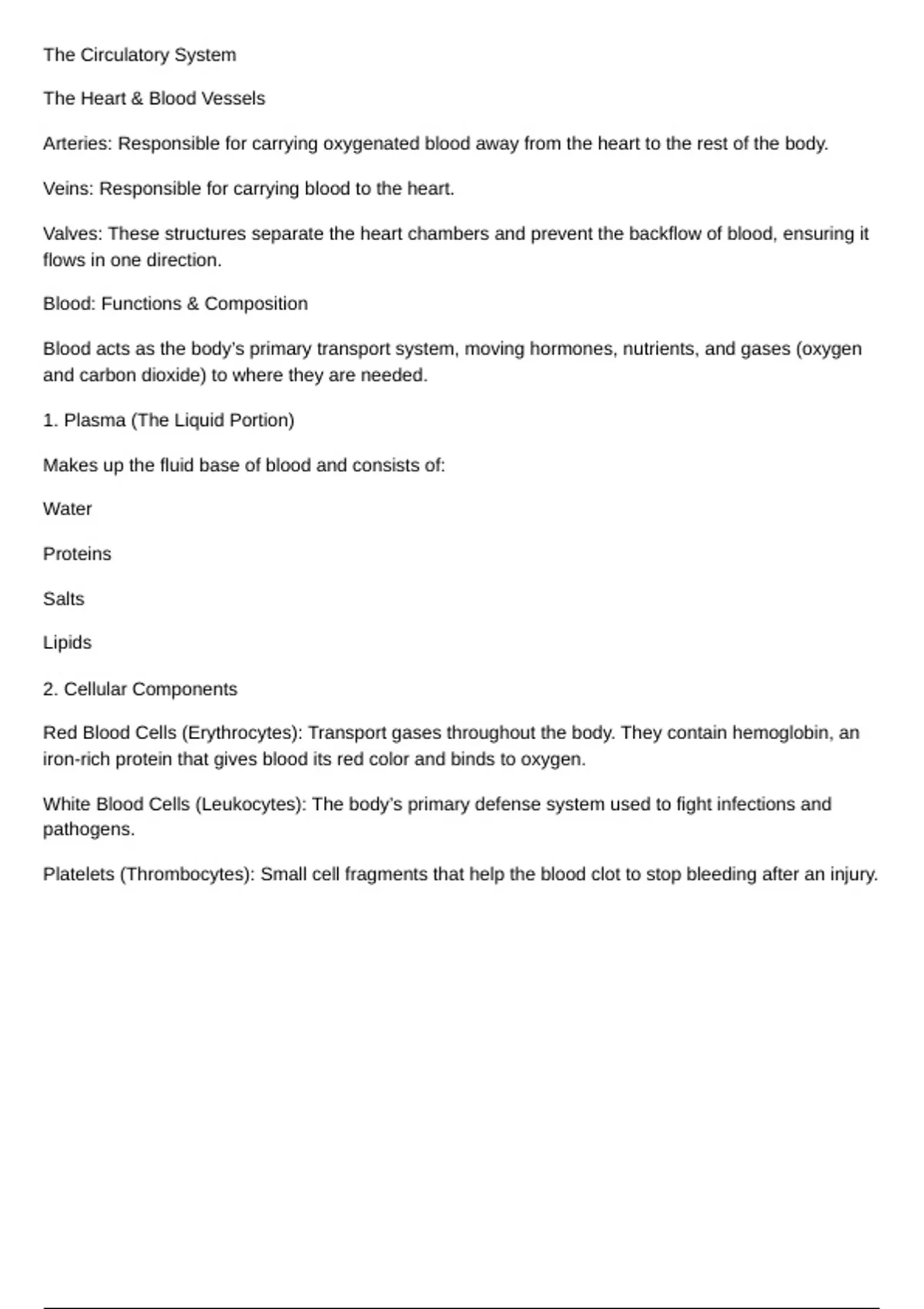 Red Blood Cells (Erythrocytes): Transport gases throughout the body. They contain hemoglobin, an