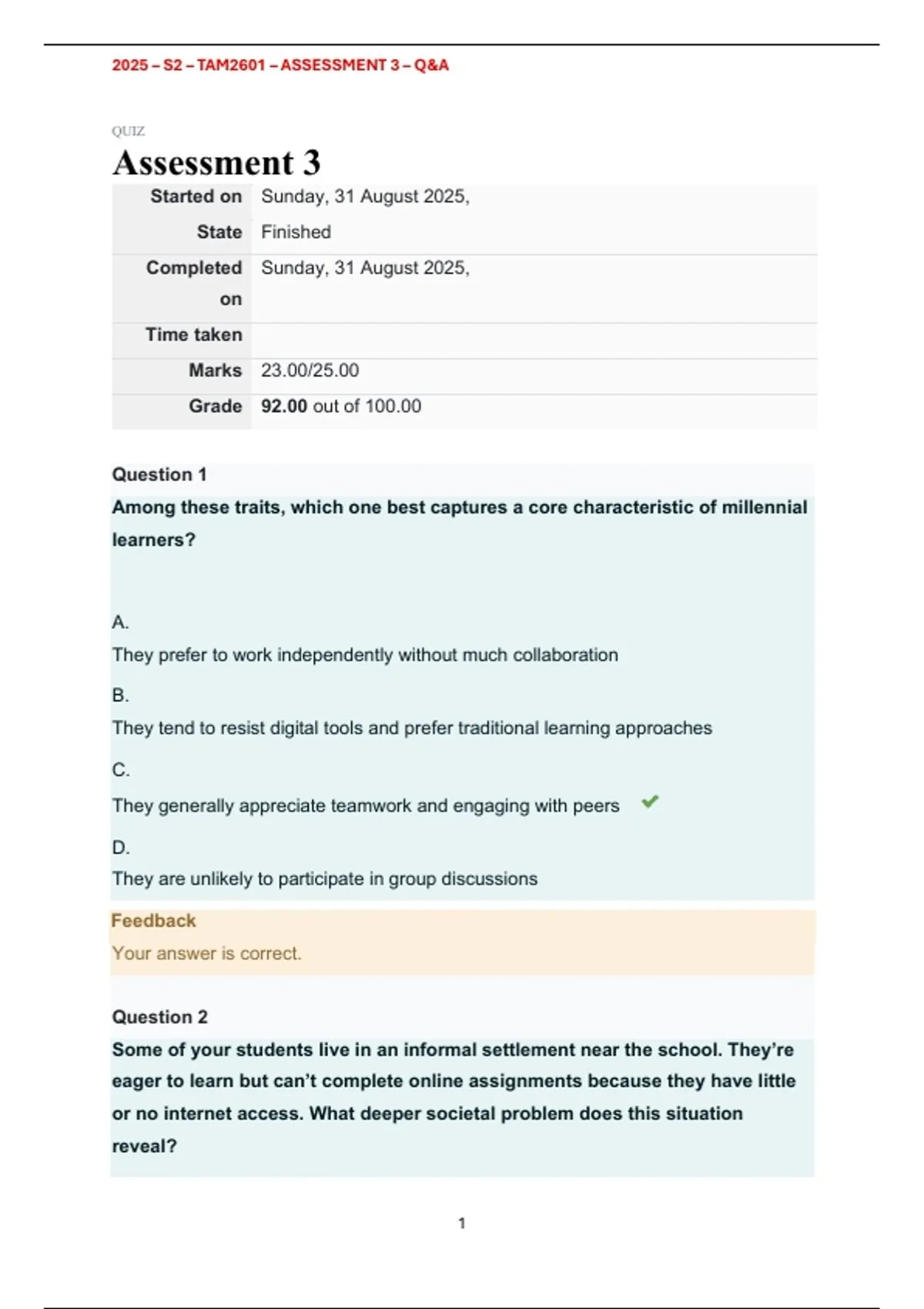 , 2025 – S2 – TAM2601 – ASSESSMENT 3 – Q&A