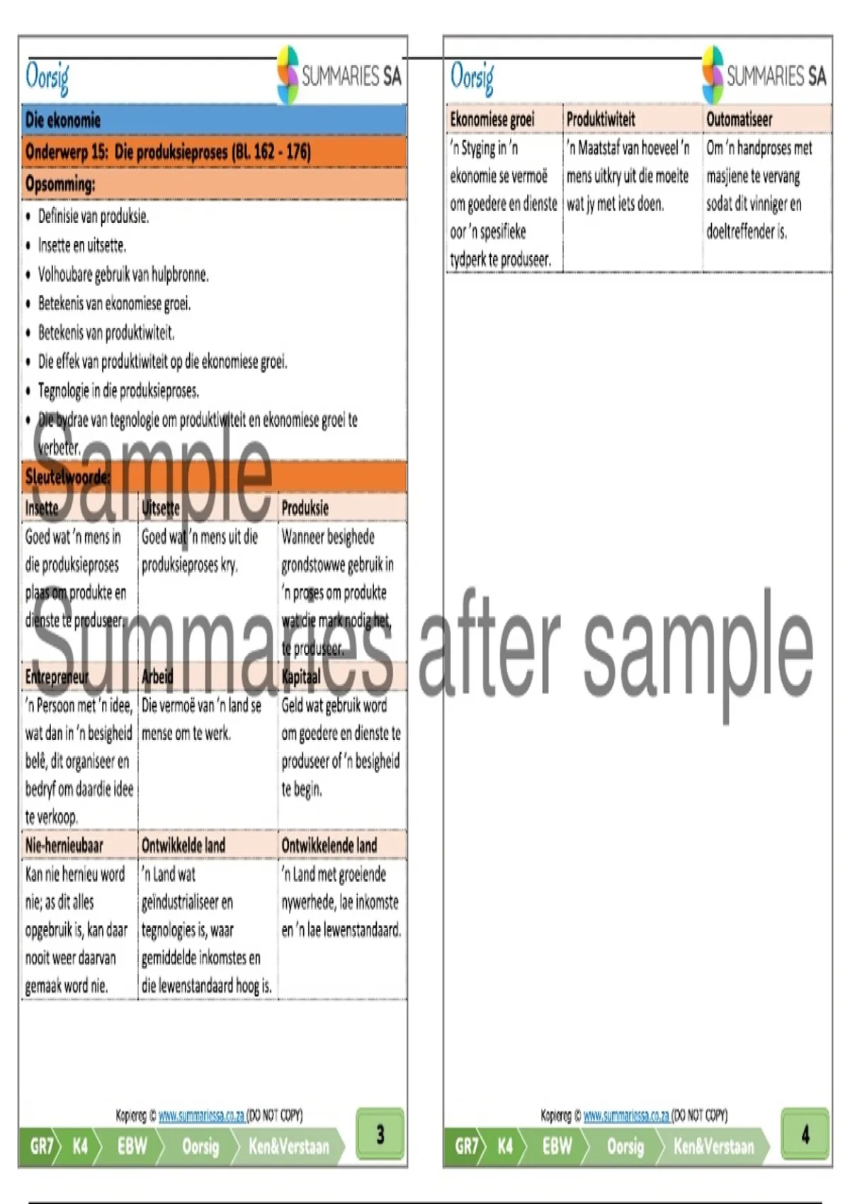 • Gebruik van hulpbronne om goedere te ekonomiese groei