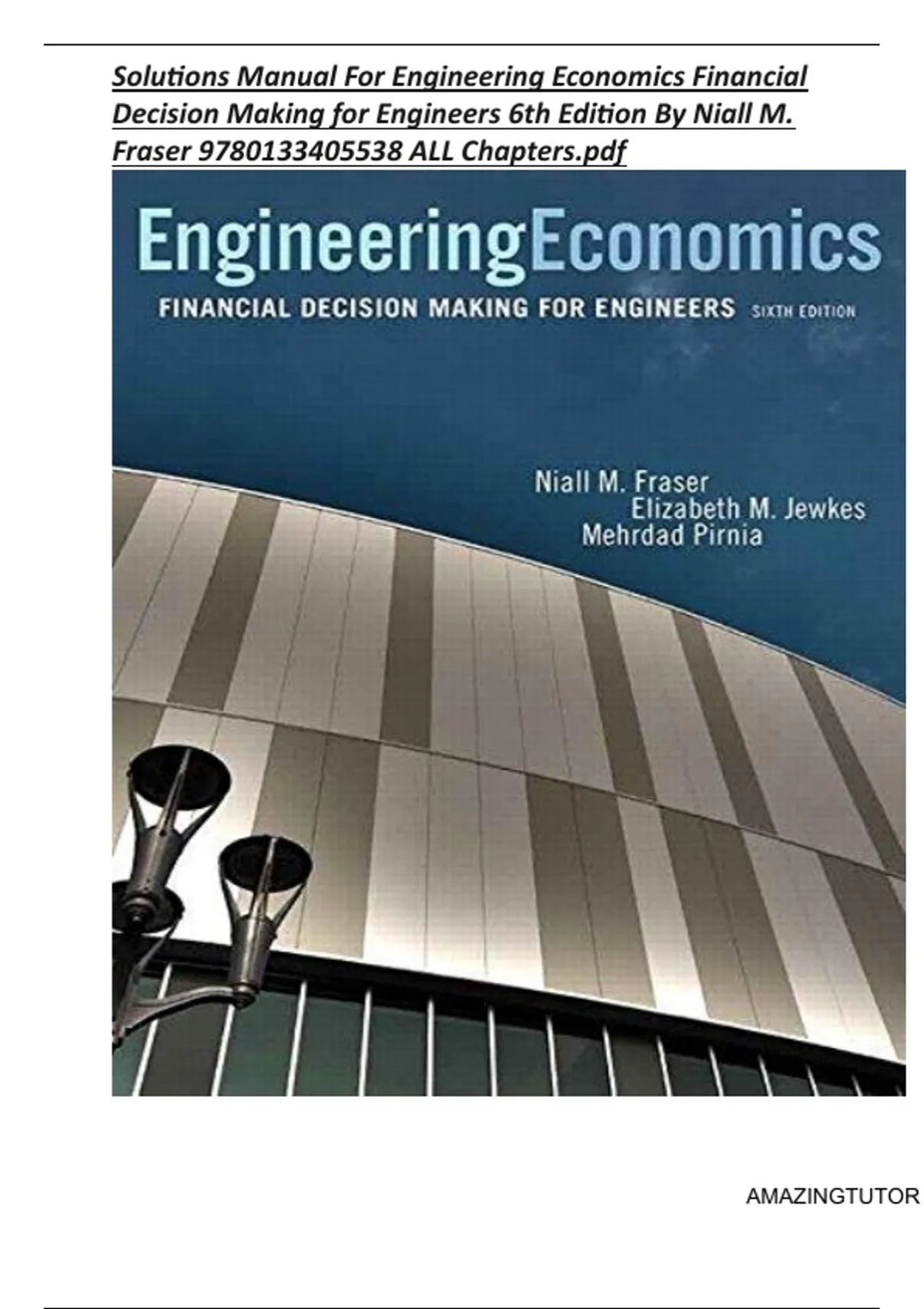 Test Bank And Solutions Manual For Engineering Economics Financial Decision Making for Engineers 6th Edition By Niall M. Fraser || ISBN:9780133405538|| ALL Chapters. Latest Updated Version pdf