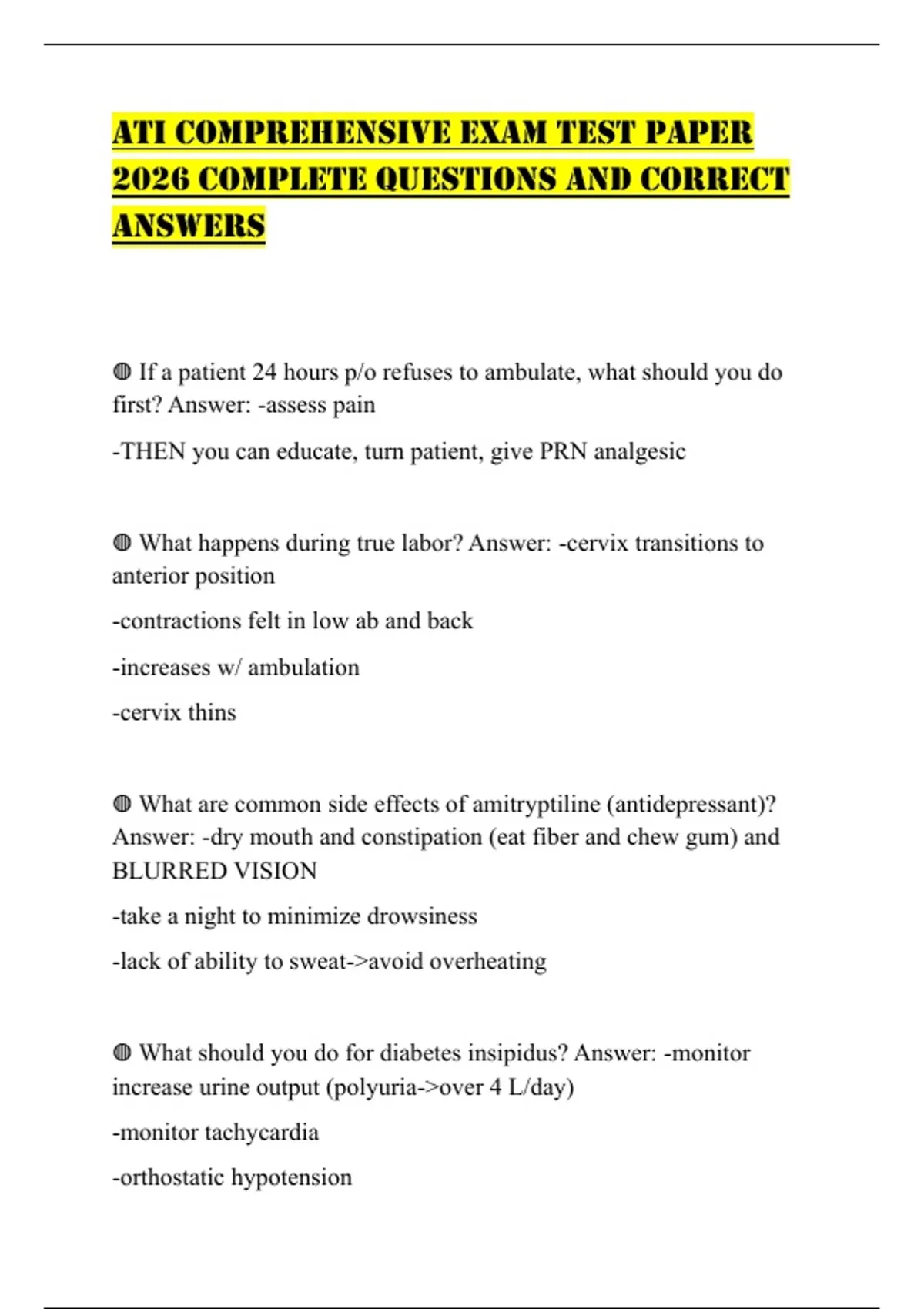 ATI COMPREHENSIVE EXAM TEST PAPER 2026 COMPLETE QUESTIONS AND CORRECT ANSWERS