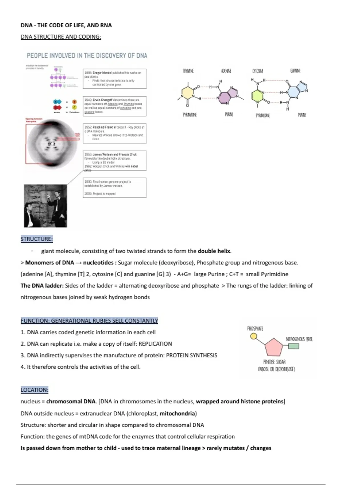 DNA STRUCTURE AND CODING: