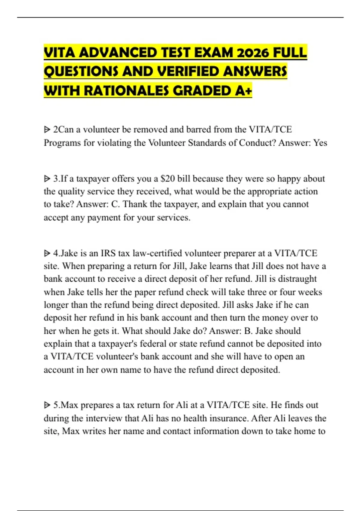 ⩥ 4.Jake is an IRS tax law-certified volunteer preparer at a VITA/TCE