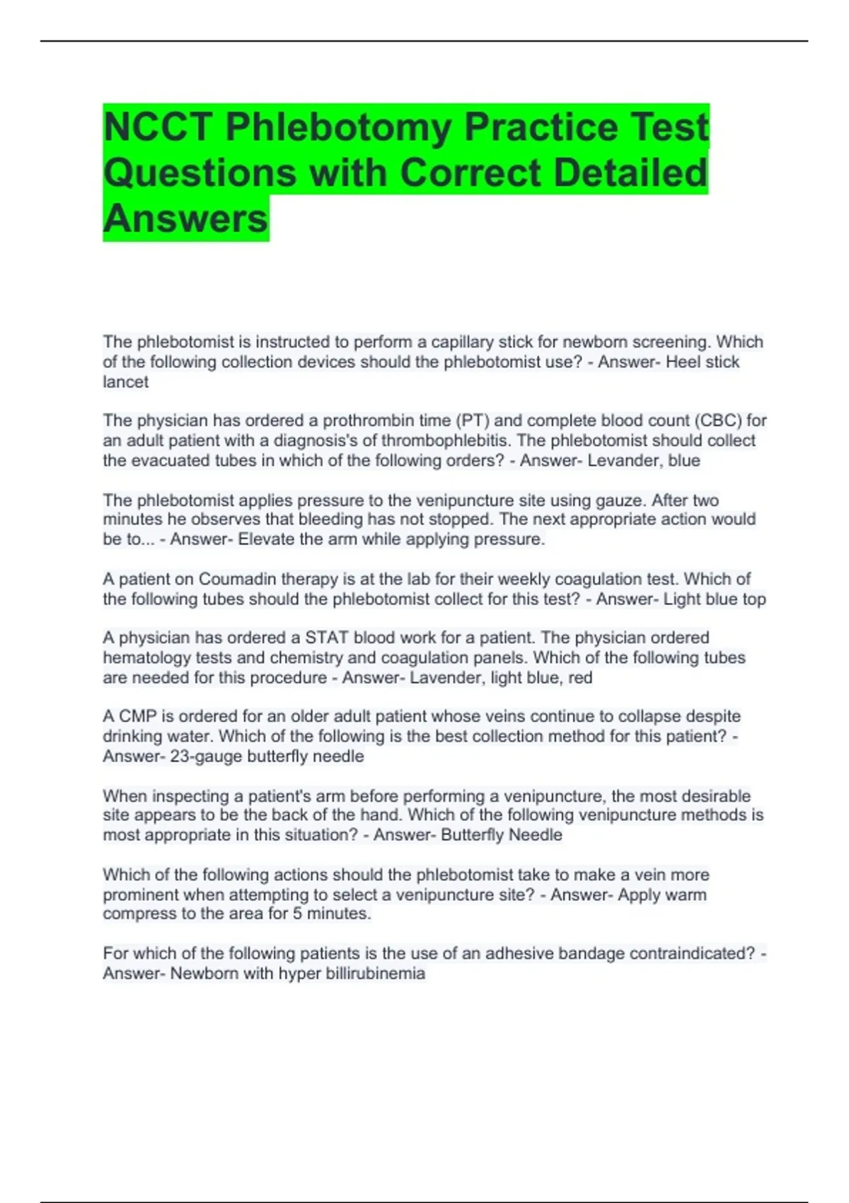 sensation. The phlebotomist should then...... - Answer- Choose a different collection site