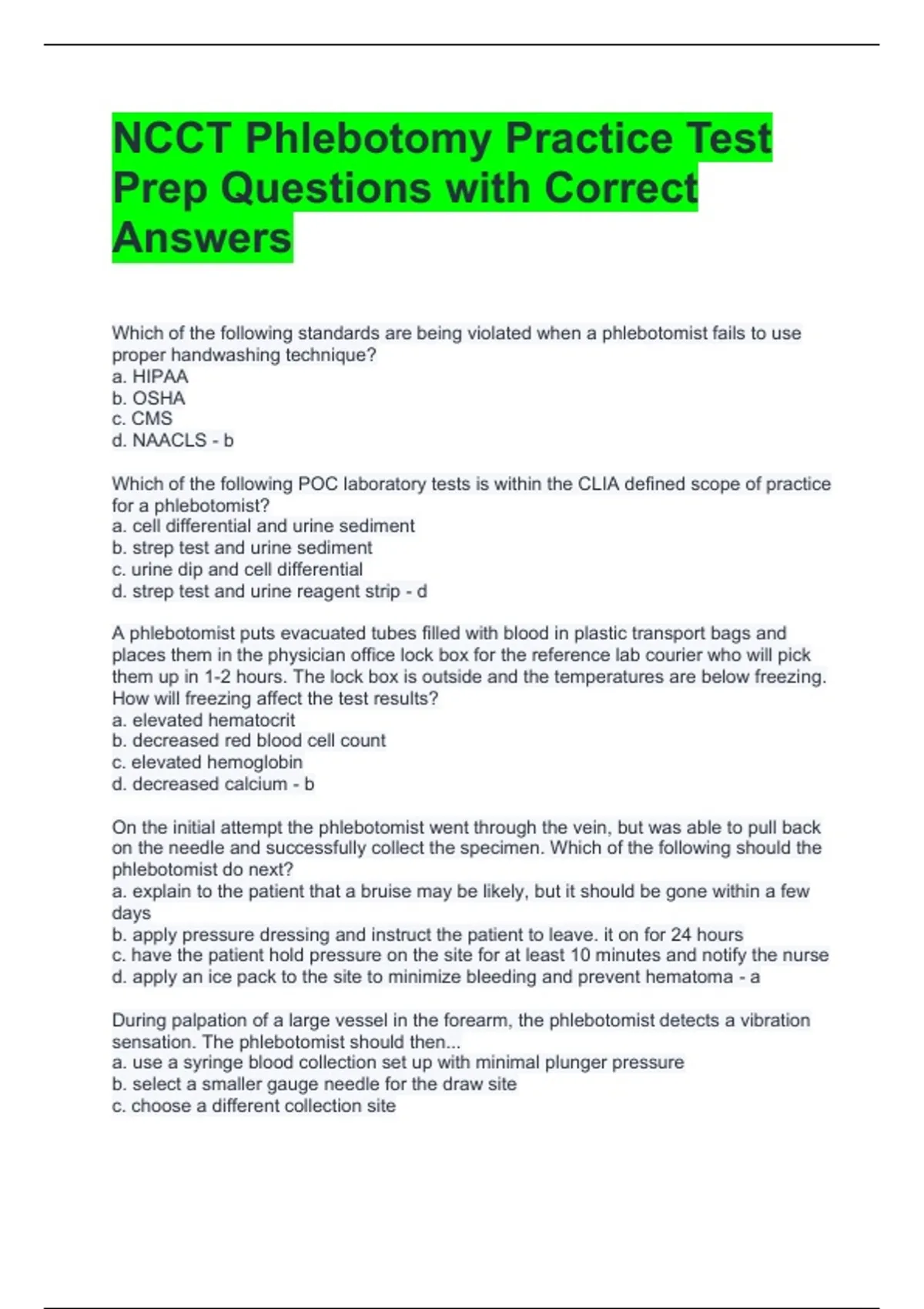 NCCT Phlebotomy Practice Test