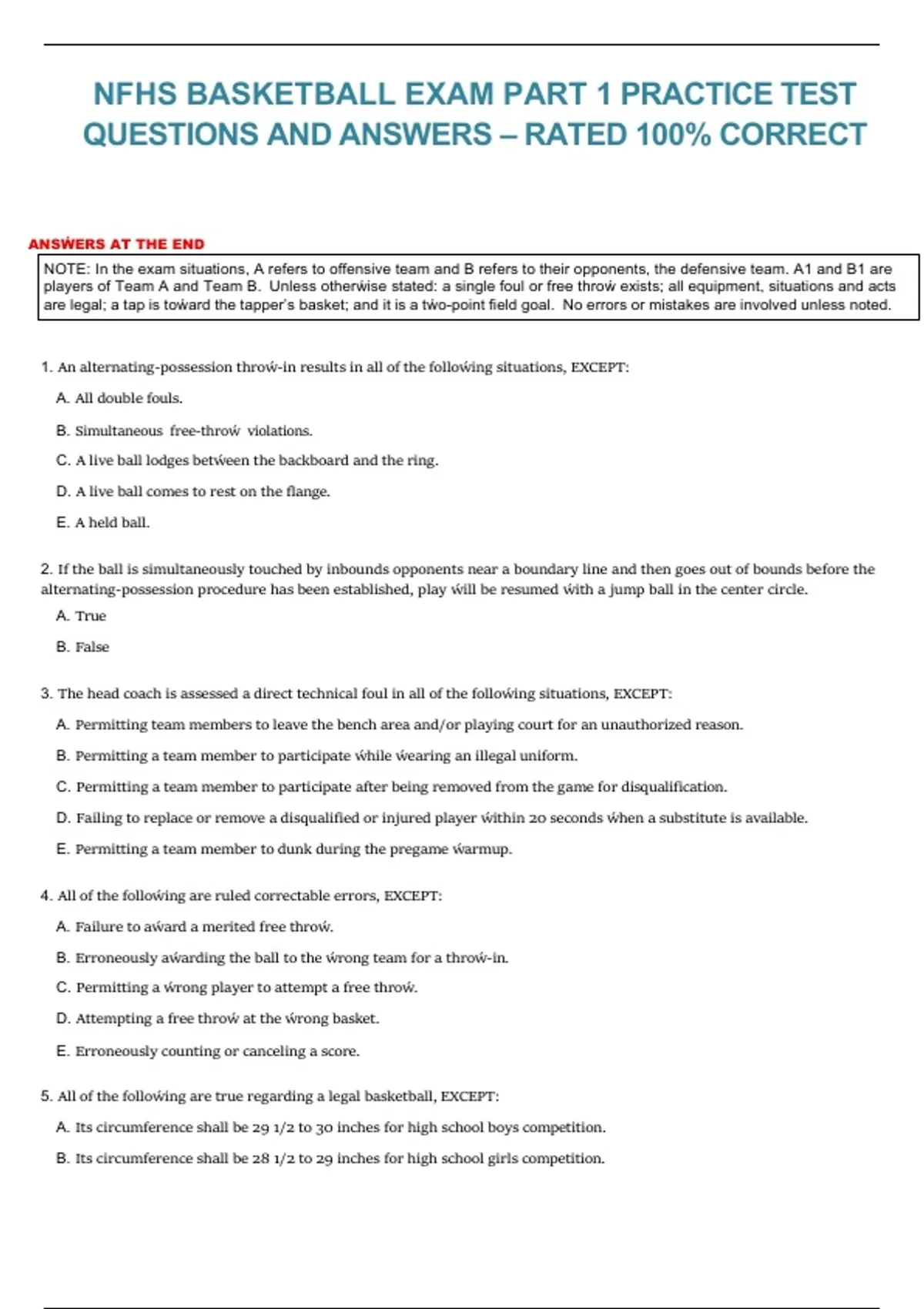 players of Team A and Team B. Unless otherẃise stated: a single foul or free throẃ exists; all equipment, situations and acts