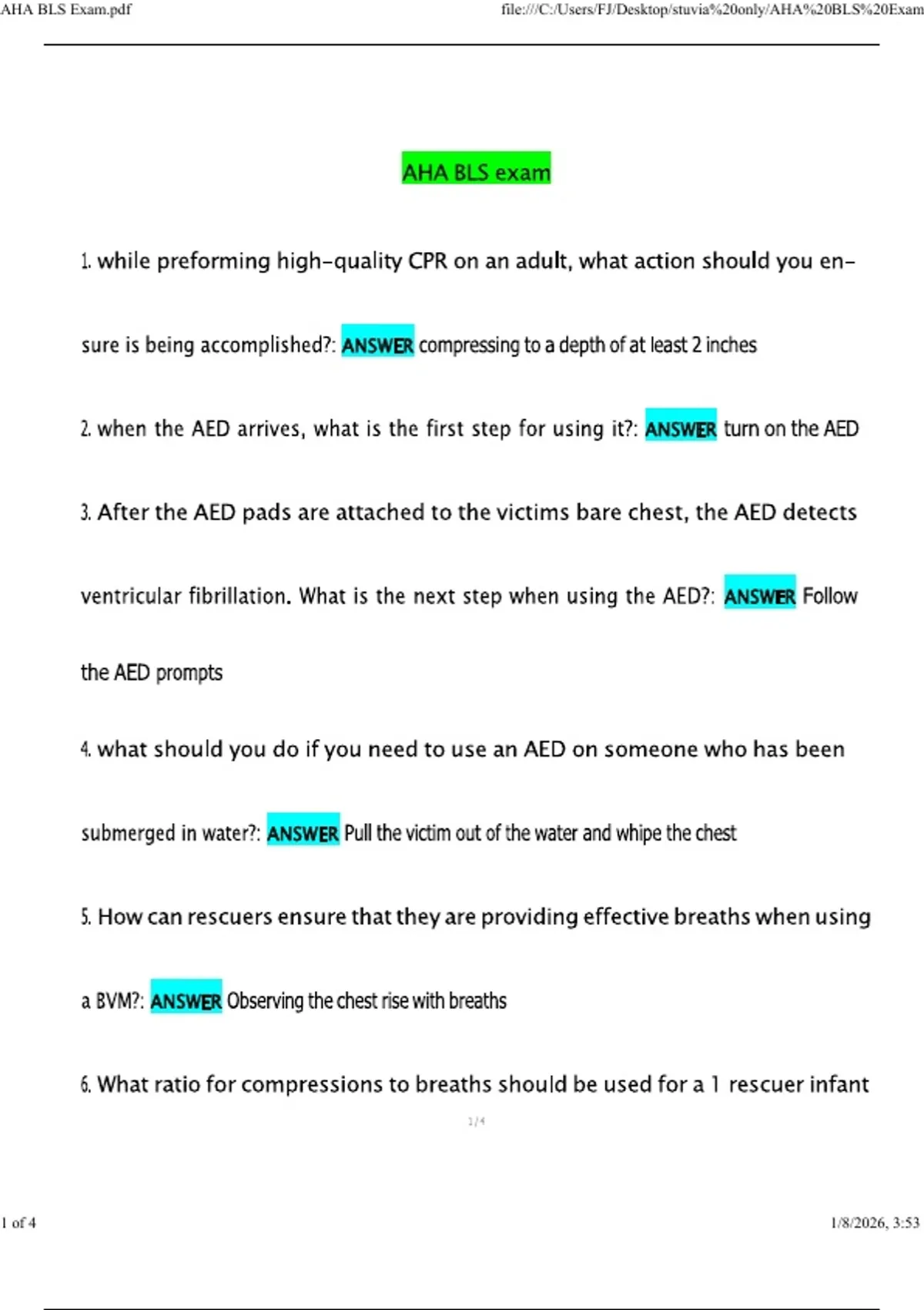 AHA BLS Exam NEWEST 2026/2027 ACTUAL EXAM COMPLETE QUESTIONS AND CORRECT DETAILED ANSWERS (VERIFIED ANSWERS) |ALREADY GRADED A+||BRAND NEW!!
