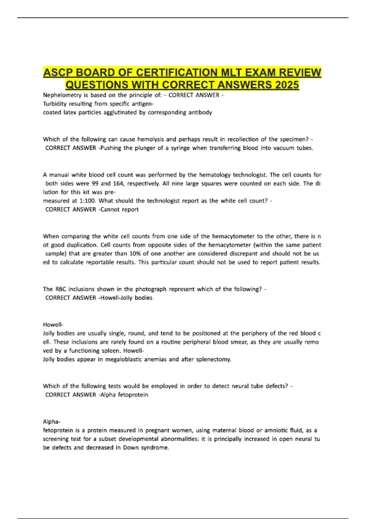 2026 ASCP BOARD OF CERTIFICATION MLT EX...IEW QUESTIONS WITH CORRECT ANSWERS.