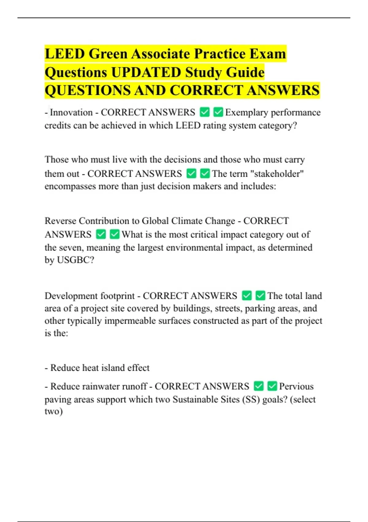 LEED Green Associate Exam Professional Level Practice Test UPDATED Study Guide QUESTIONS AND CORRECT ANSWERS