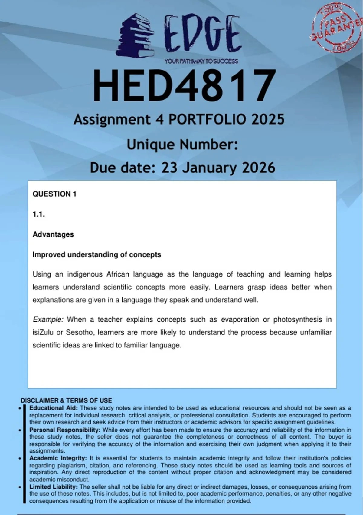 these study notes, the seller does not guarantee the completeness or correctness of all content. The buyer is