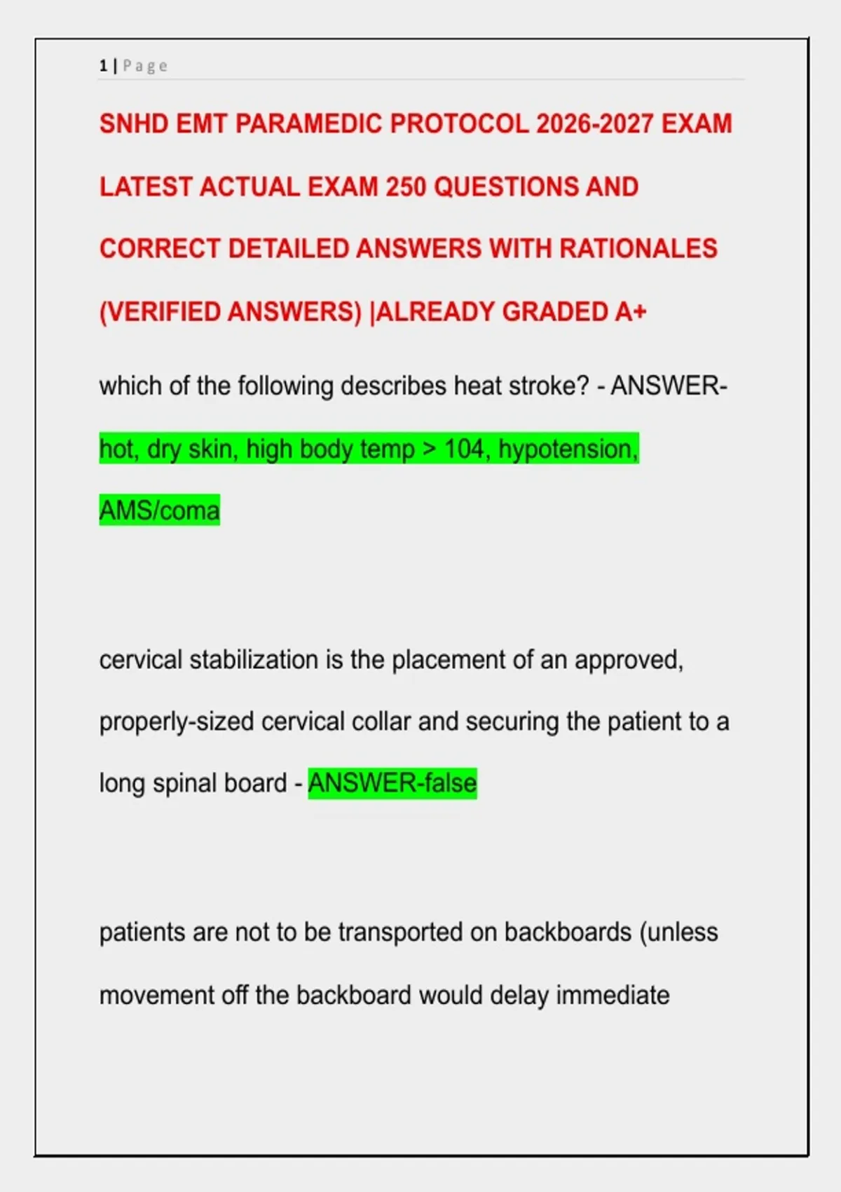 SNHD EMT PARAMEDIC PROTOCOL EXAM LATEST ACTUAL EXAM 250 QUESTIONS AND CORRECT DETAILED ANSWERS WITH RATIONALES (VERIFIED ANSWERS) |ALREADY GRADED A+