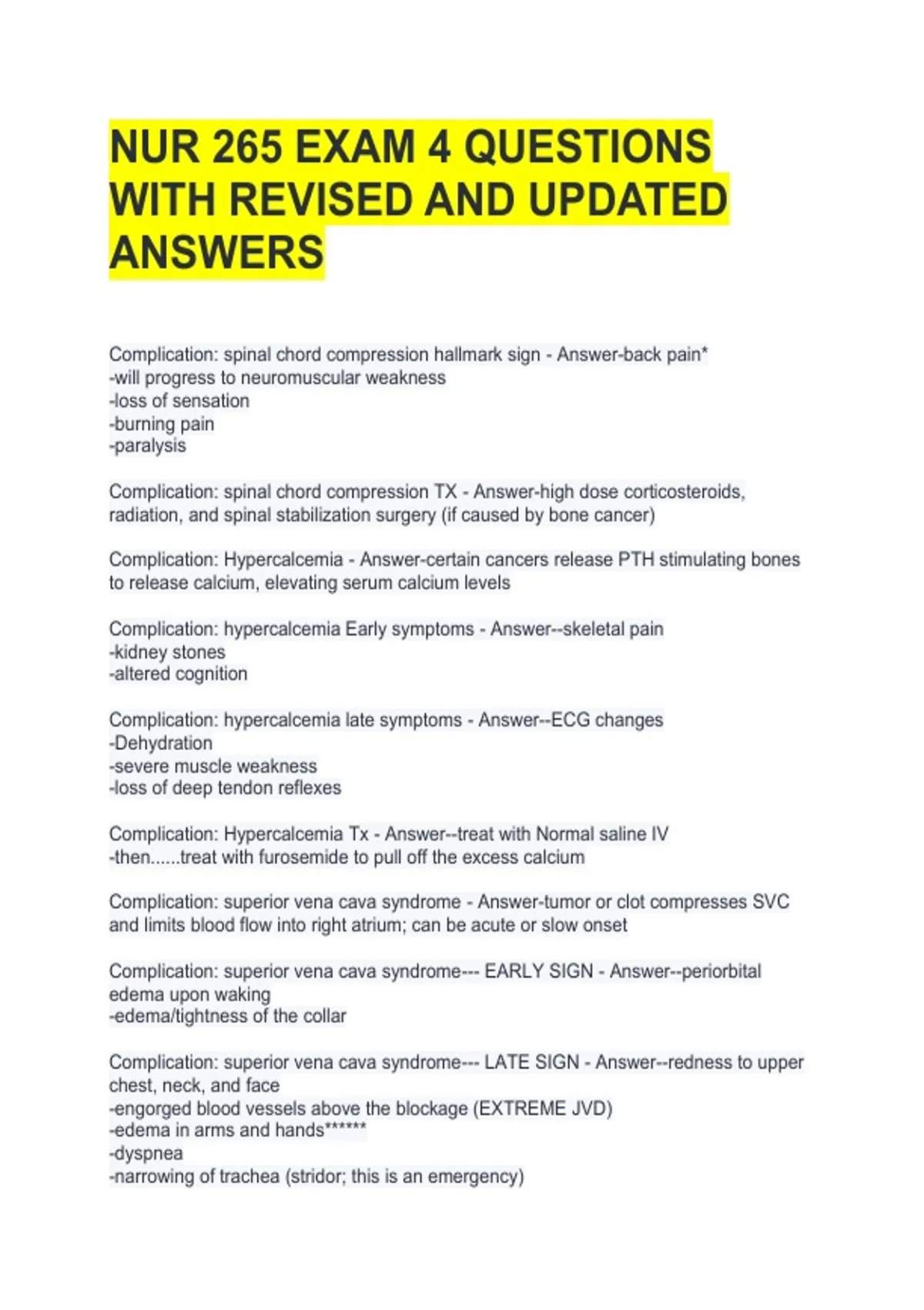 NUR 265 EXAM 4 QUESTIONS WITH REVISED AND UPDATED ANSWERS