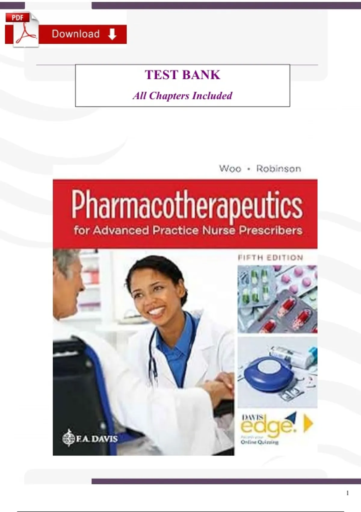 Pharmacotherapeutics for Advanced Practice Nurse Prescribers (5th Edition) – Verified Test Bank by Woo & Robinson (All Chapters Included)