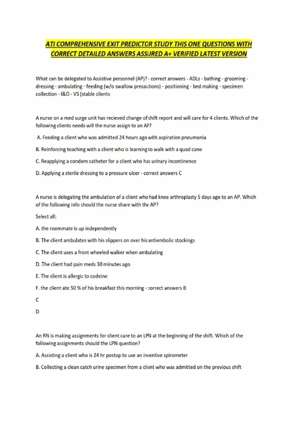 ATI COMPREHENSIVE EXIT PREDICTOR STUDY THIS ONE QUESTIONS WITH CORRECT DETAILED ANSWERS ASSURED A+ VERIFIED LATEST VERSIONATI COMPREHENSIVE EXIT PREDICTOR STUDY THIS ONE QUESTIONS WITH CORRECT DETAILED ANSWERS ASSURED A+ VERIFIED LATEST VERSIONATI COMPREHENSIVE EXIT PREDICTOR STUDY THIS ONE QUESTIONS WITH CORRECT DETAILED ANSWERS ASSURED A+ VERIFIED LATEST VERSION