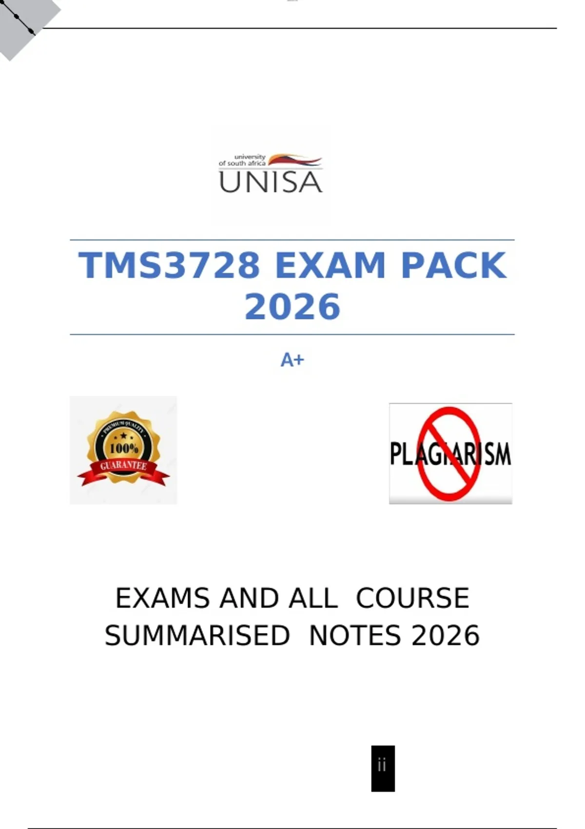 TMS3728 EXAM PACK 2026 /EXAMS AND ALL COURSE SUMMARISED NOTES 2026