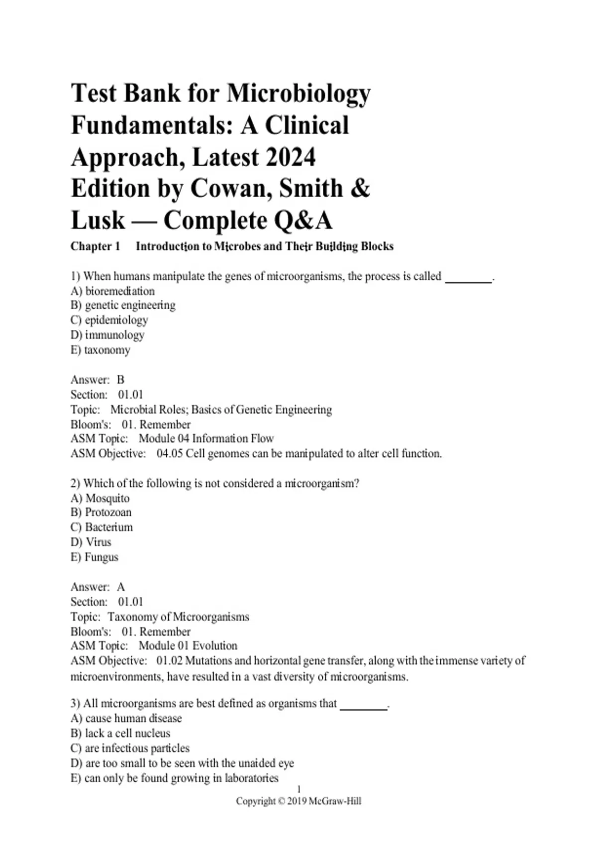Get the full test bank for Microbiology Fundamentals: A Clinical Approach (Latest 2024 Edition) by Cowan, Smith & Lusk. Includes complete questioMicrobiology Fundamentals Clinical Approach test bankns and answers across all topics, designed to help you study efficiently for exams, quizzes, and class reviews.