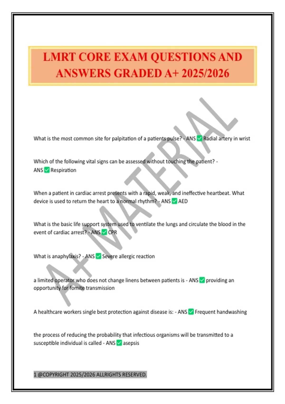 LMRT CORE EXAM QUESTIONS AND