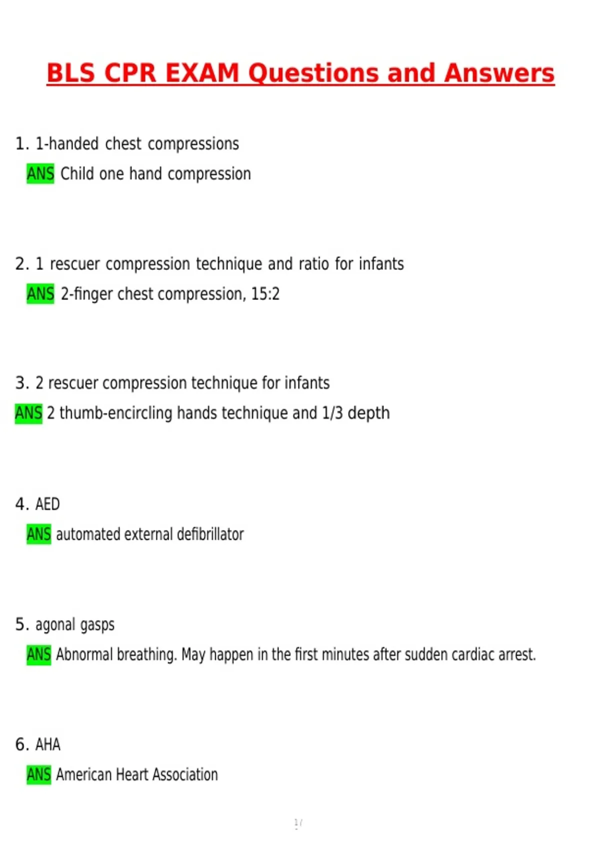1. 1-handed chest compressions