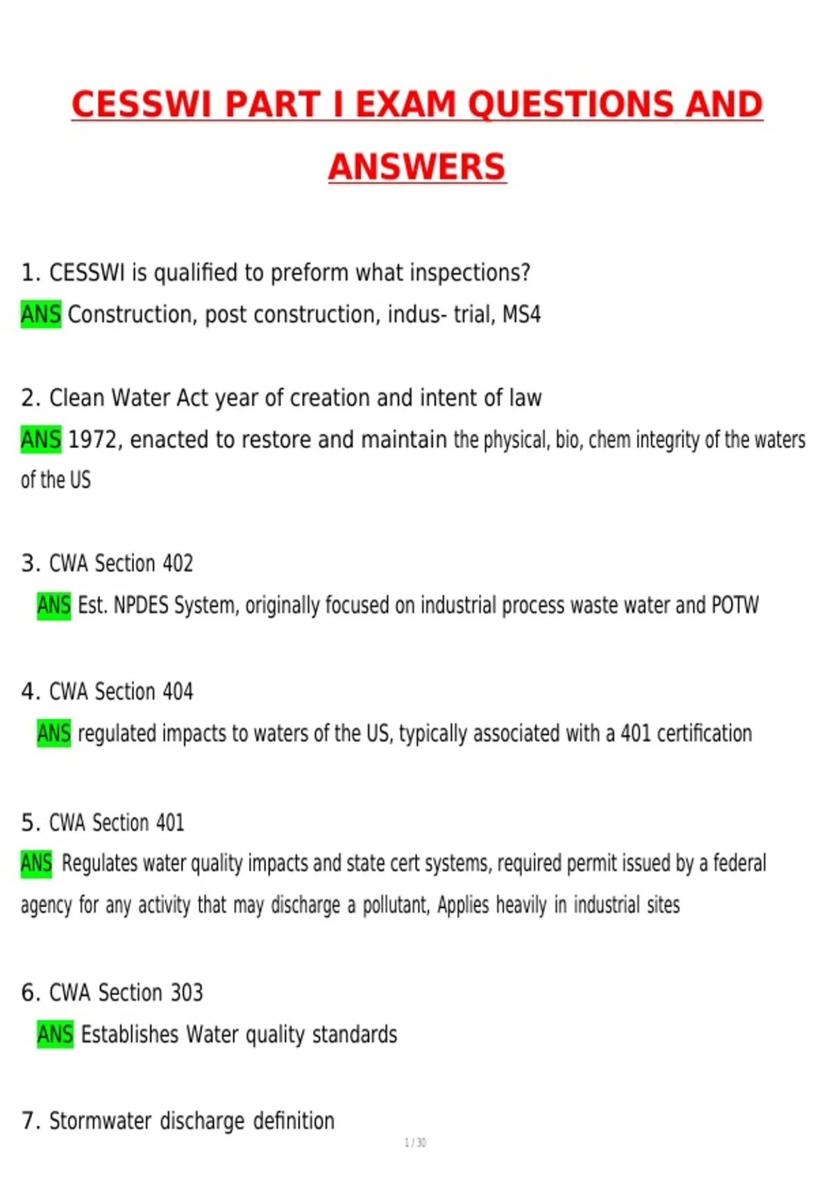 1. CESSWI is qualified to preform what inspections?