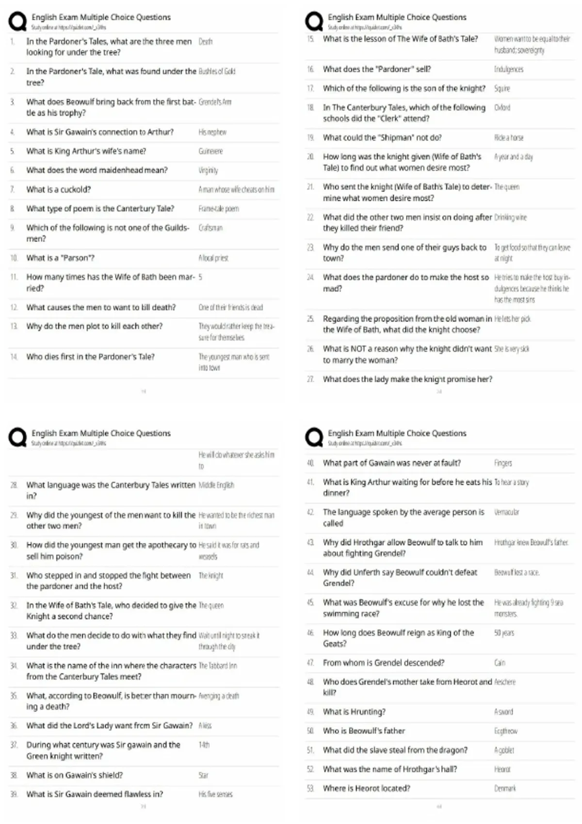 textual variations multiple choice questions