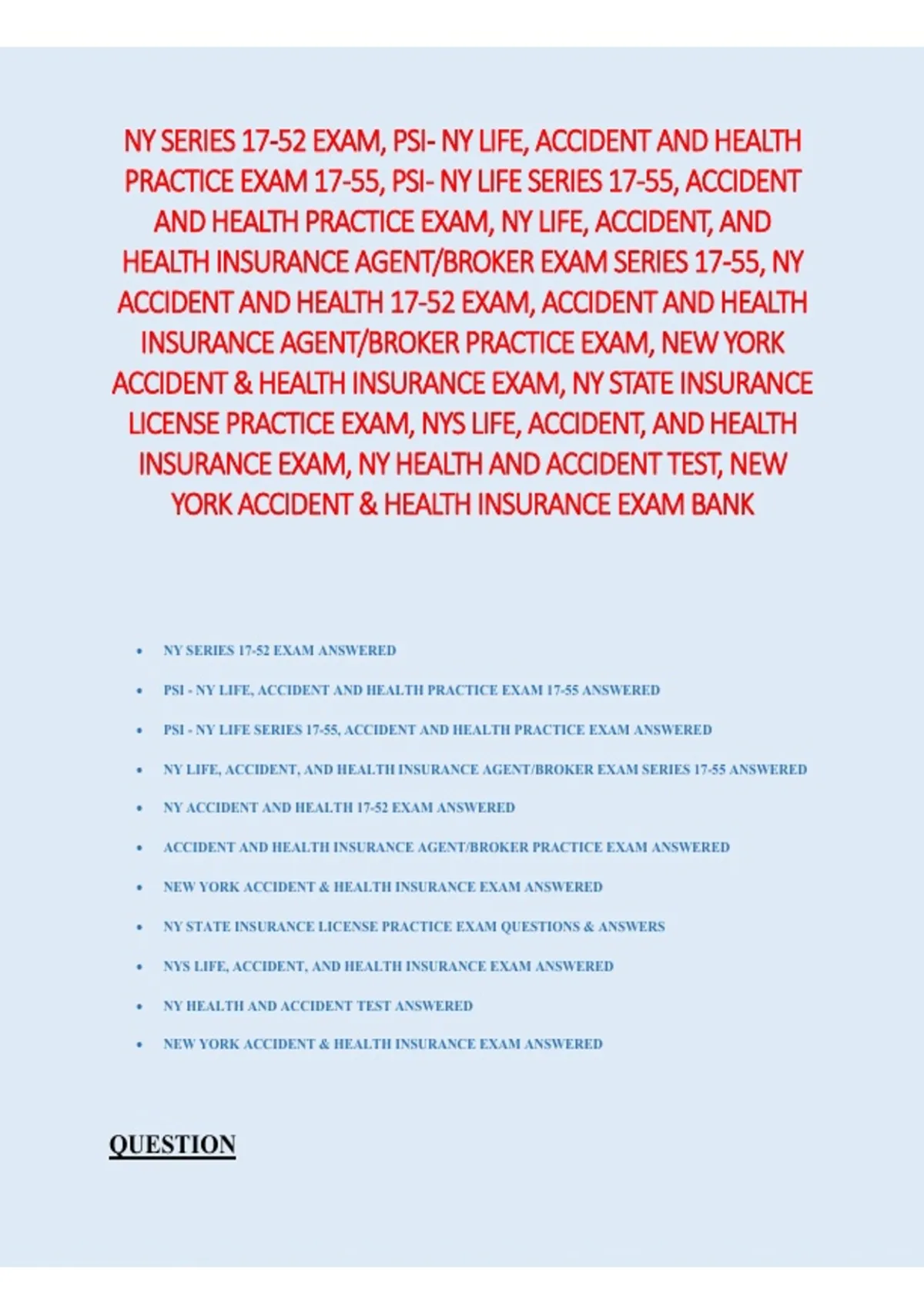 PSI - NY LIFE, ACCIDENT AND HEALTH PRACTICE EXAM 17-55 ANSWERED