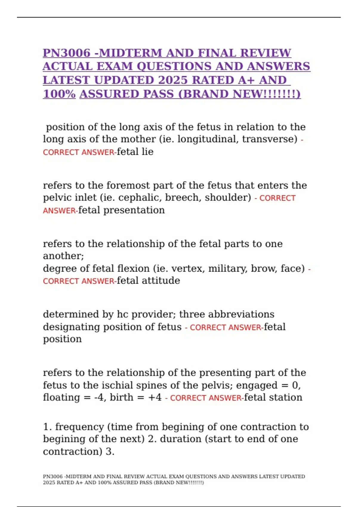 PN3006 -MIDTERM AND FINAL REVIEW ACTUAL EXAM QUESTIONS AND ANSWERS LATEST UPDATED 2025 RATED A AND 100 ASSURED PASS (BRAND NEW)