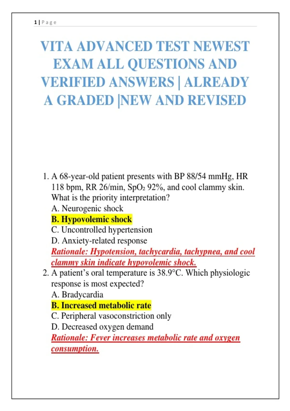 VITA ADVANCED TEST NEWEST EXAM ALL QUESTIONS AND VERIFIED ANSWERS | ALREADY A GRADED |NEW AND REVISED