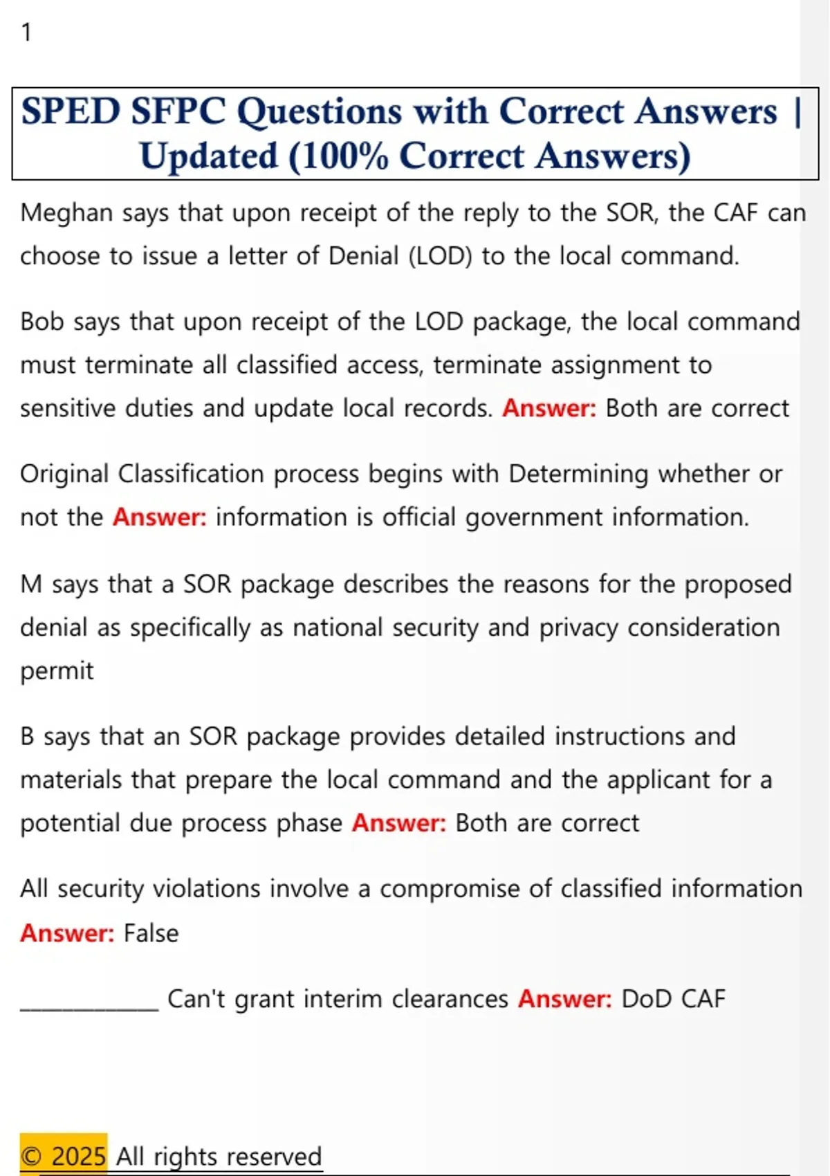 SPED SFPC Questions with Correct Answers |