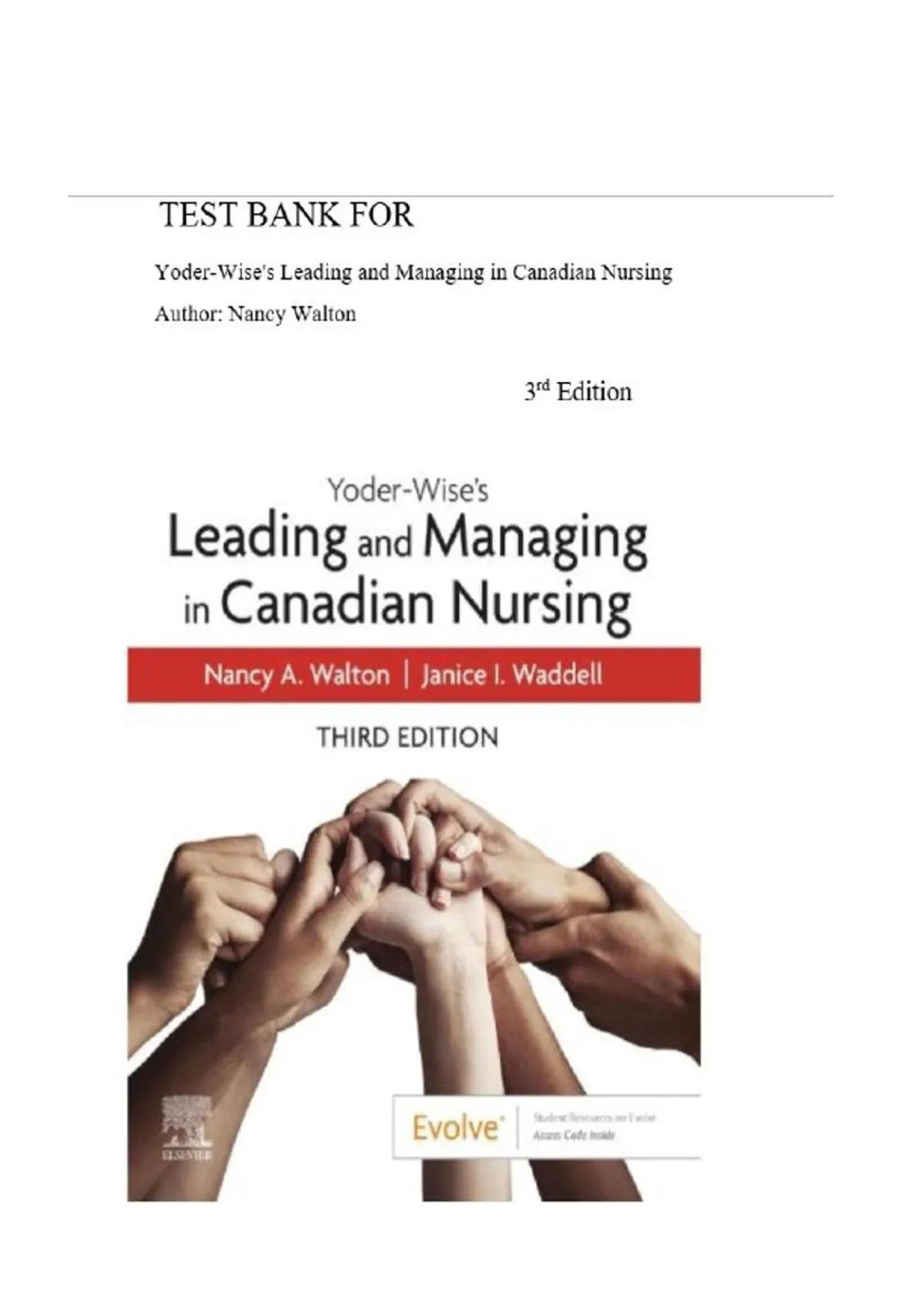 This is a complete Test Bank for Yoder-Wise’s Leading and Managing in Canadian Nursing, 3rd Edition (Patricia S. Yoder-Wise, Janice Waddell, Nancy Walton). Designed for nursing students, this test bank supports exam preparation, revision, and achieving top scores. What’s Included: Comprehensive question bank (multiple choice, short answer, application questions) Aligned with Leading and Managing in Canadian Nursing, 3rd Ed Updated for 2026 syllabus expectations Suitable for final exams, quizzes, and practice tests Why Choose This Resource: • Graded A+ — trusted by students for exam success • Clear structure for efficient study • Perfect for course revision and test readiness Boost confidence and performance with targeted practice questions.