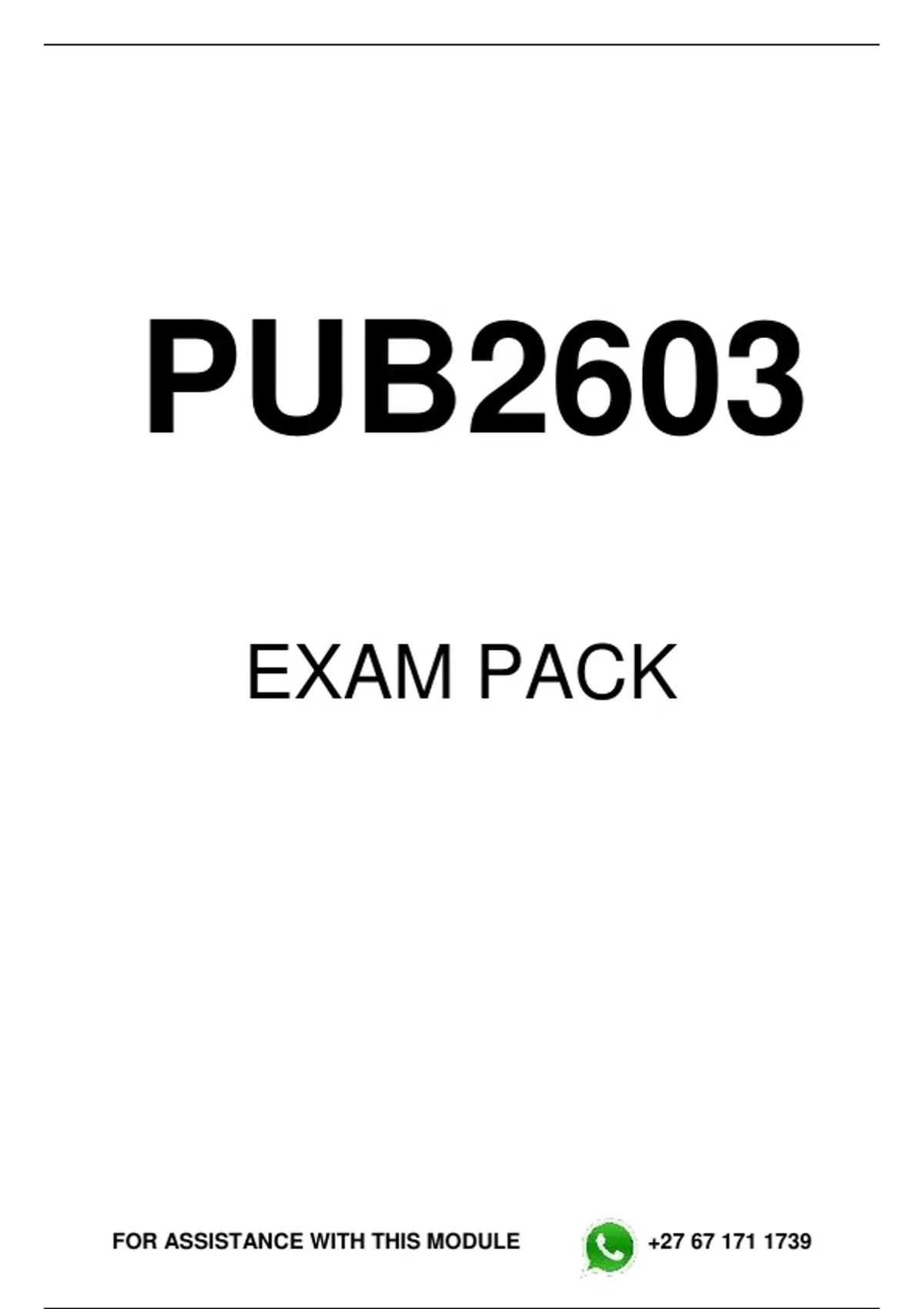 PUB2603 Latest exam pack questions and answers and summarized notes for exam preparation. Updated for 2026 exams . For assistance Whats-App.0.6.7..1.7.1..1.7.3.9 . All the best on your exams!!