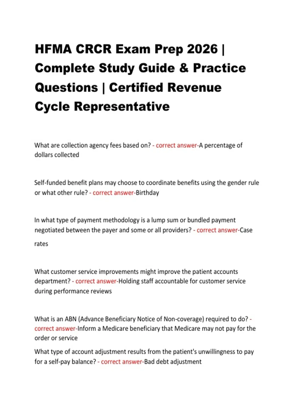 HFMA CRCR Exam Prep 2026 |