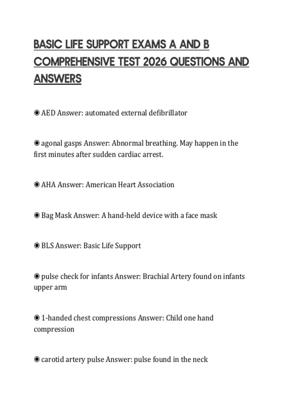 BASIC LIFE SUPPORT EXAMS A AND B COMPREHENSIVE TEST 2026 QUESTIONS AND ANSWERS