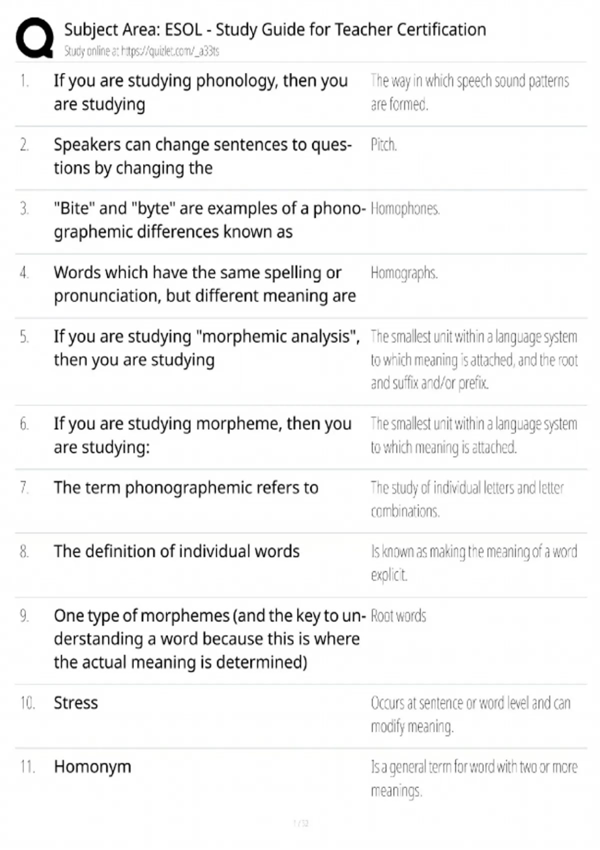 ESOL Subject Area / Teacher Certification Study Guide / Florida K-12 & Praxis 5362 / Test Bank & Exam Prep / Score 100% / 2025 Update