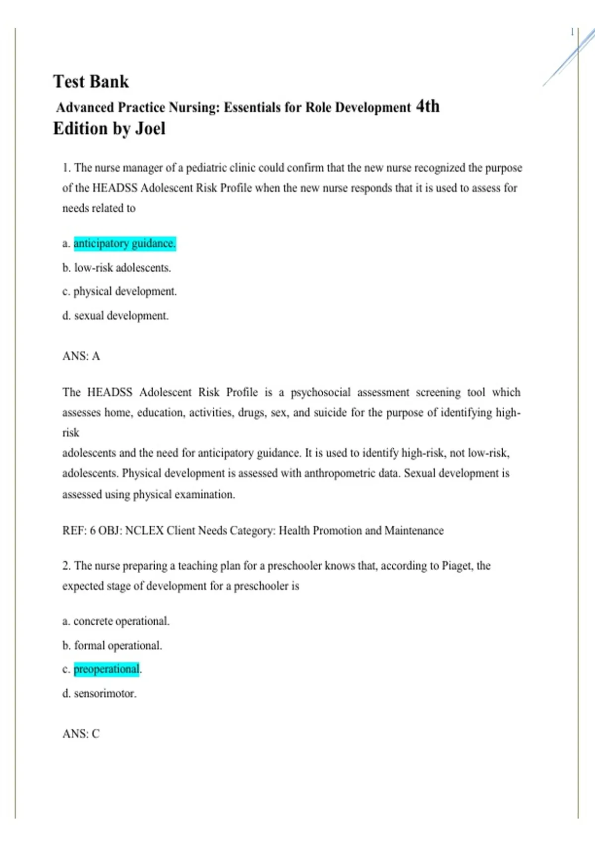 2 of 165 Test Bank For Advanced Practice