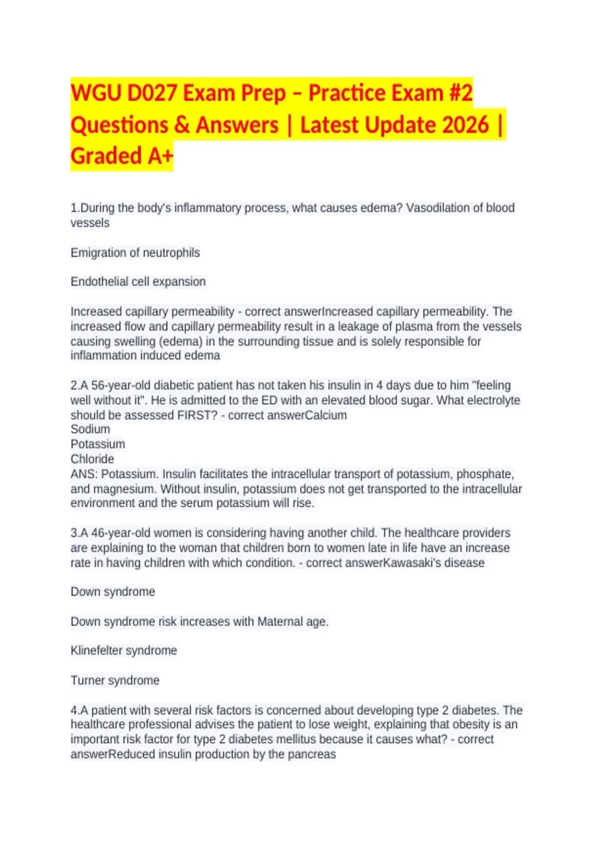 WGU D027 Exam Prep – Practice Exam #2 Questions & Answers | Latest Update 2026 | Graded A+