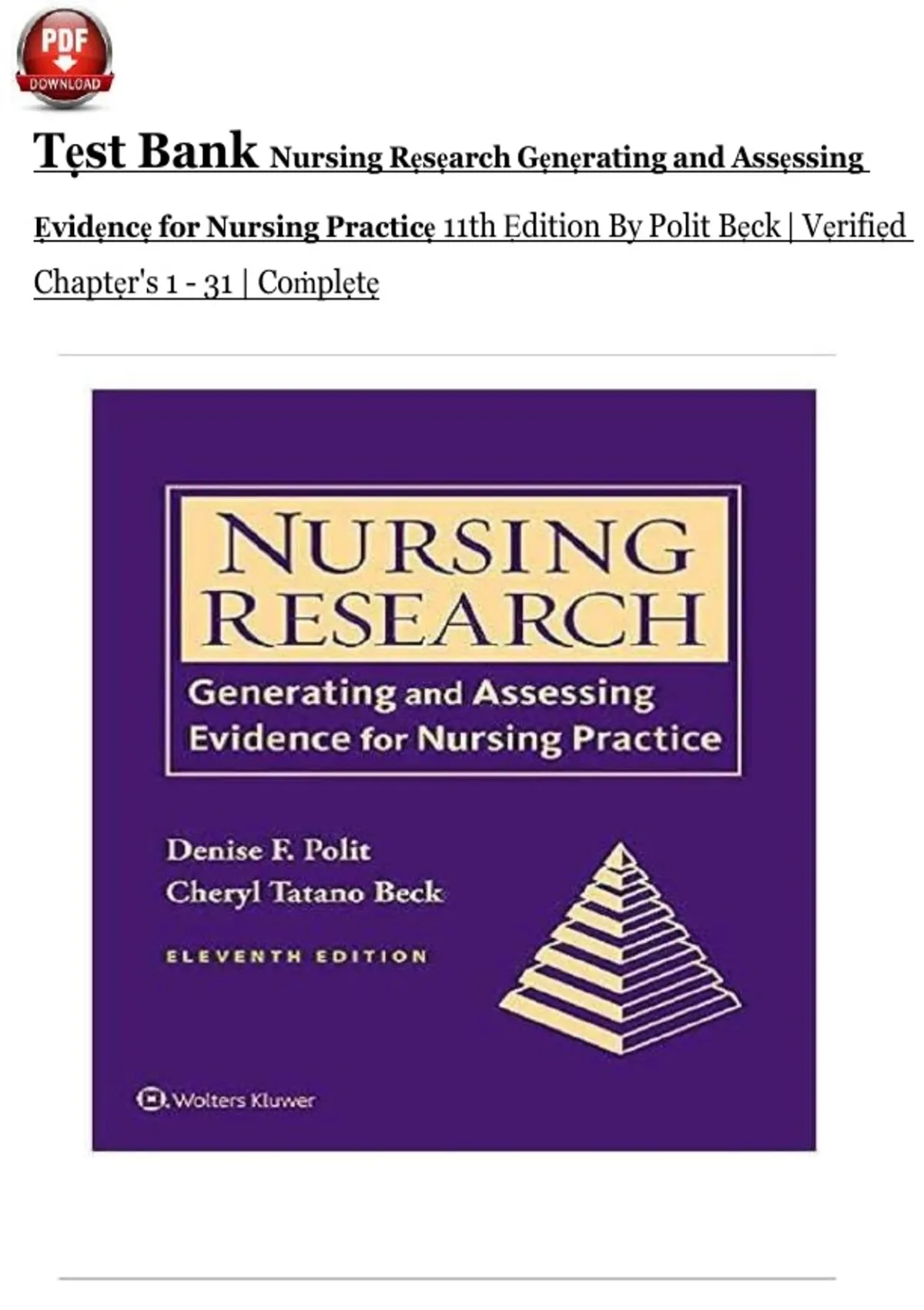 Test Bank for Nursing Research Generating and Assessing Evidence for Nursing Practice 11th Edition By Denise Polit; Cheryl Beck Chapter 1-33 Questions and Answers