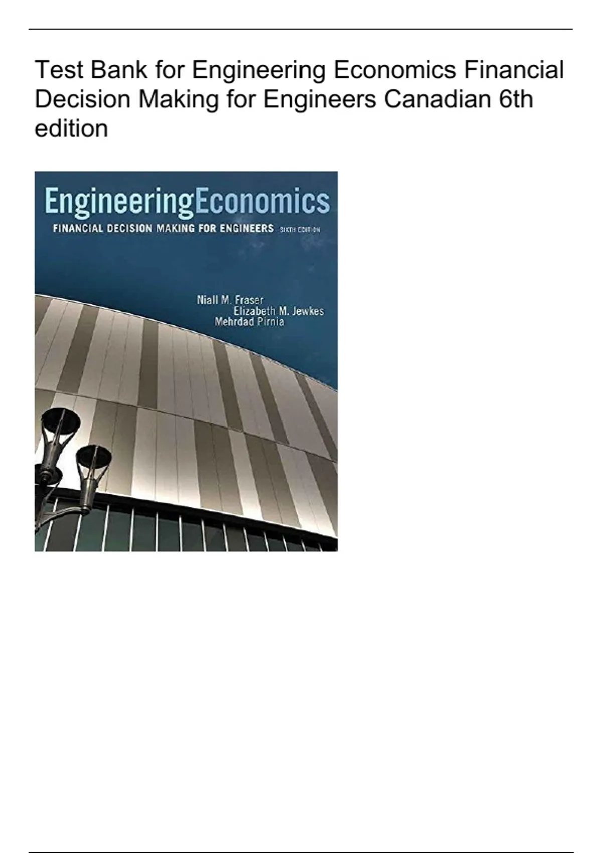 Engineering Economics, 6e (Fraser/Pirnia)