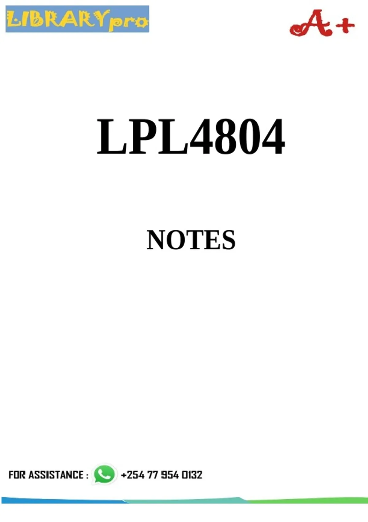 LPL4804 SUMMARY NOTES