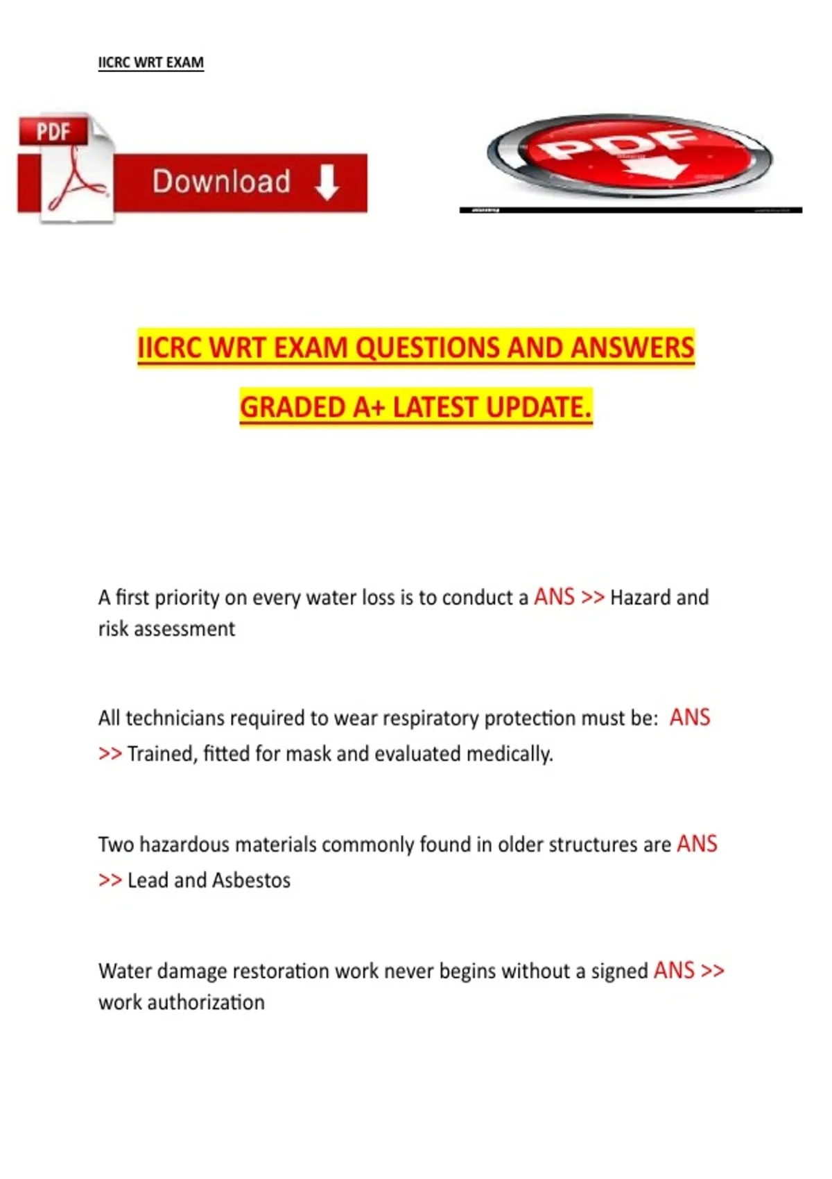 IICRC WRT EXAM QUESTIONS AND ANSWERS