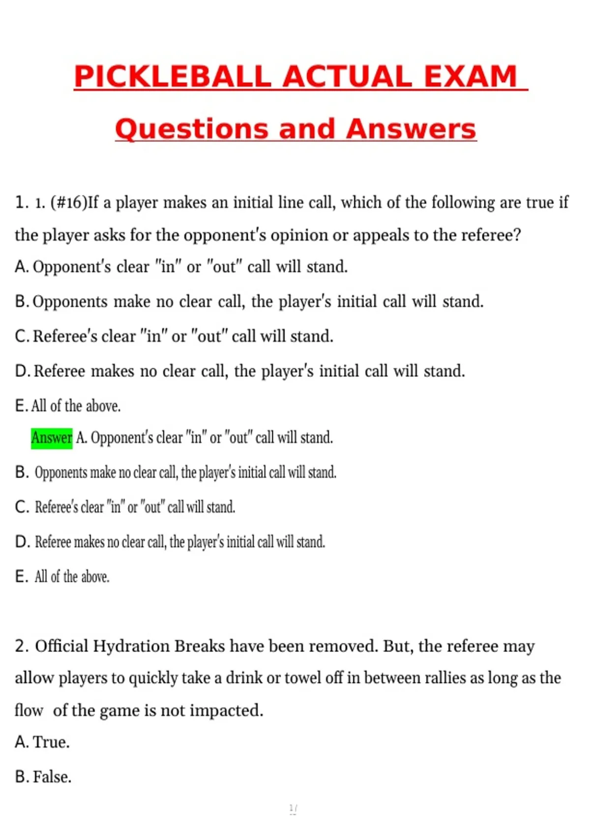 1. 1. (#16)If a player makes an initial line call, which of the following are true if