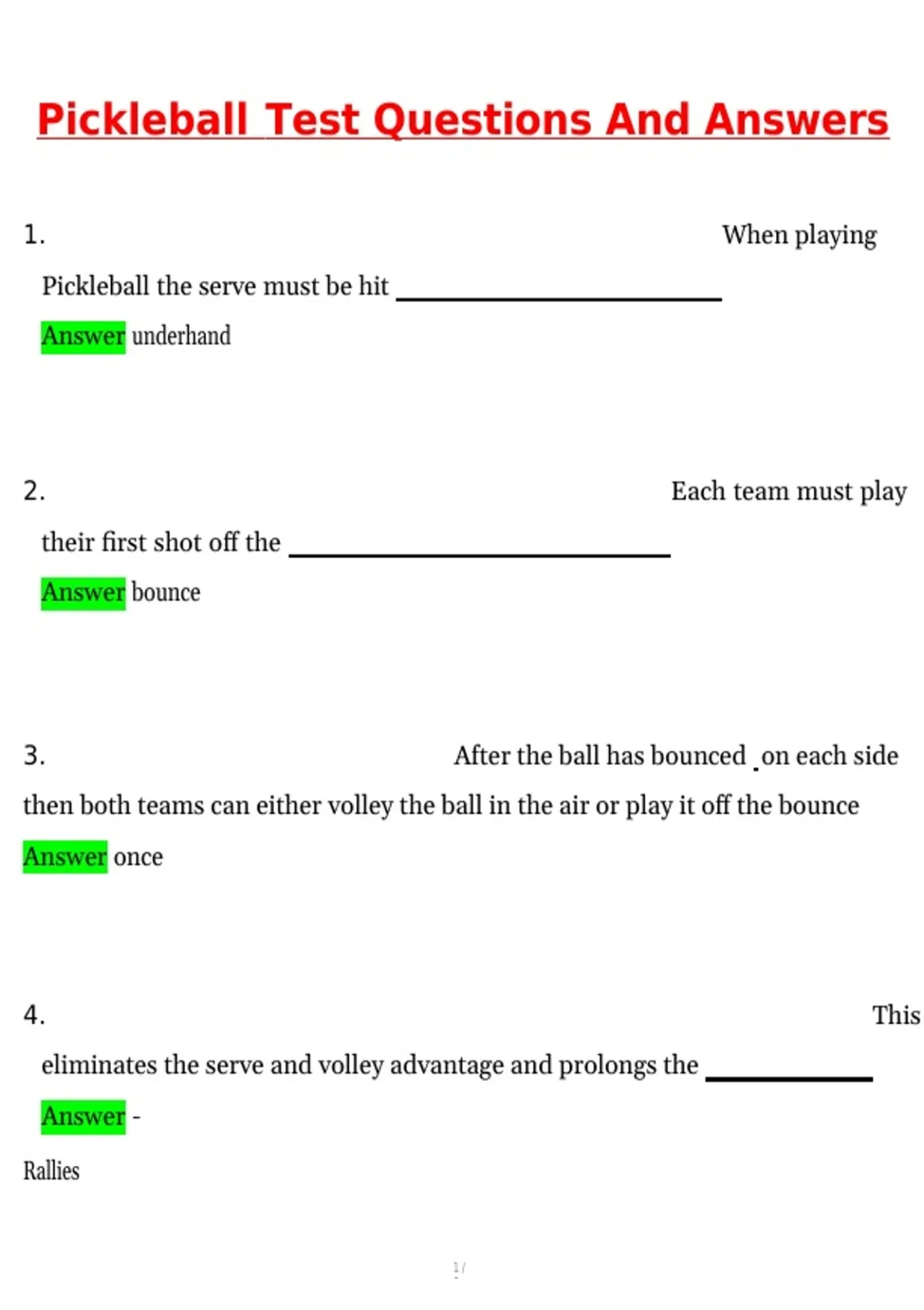 Pickle Ball Test (Latest 2026 / 2027 Update) Complete Questions and Correct Answers, 100% Verified Graded A+