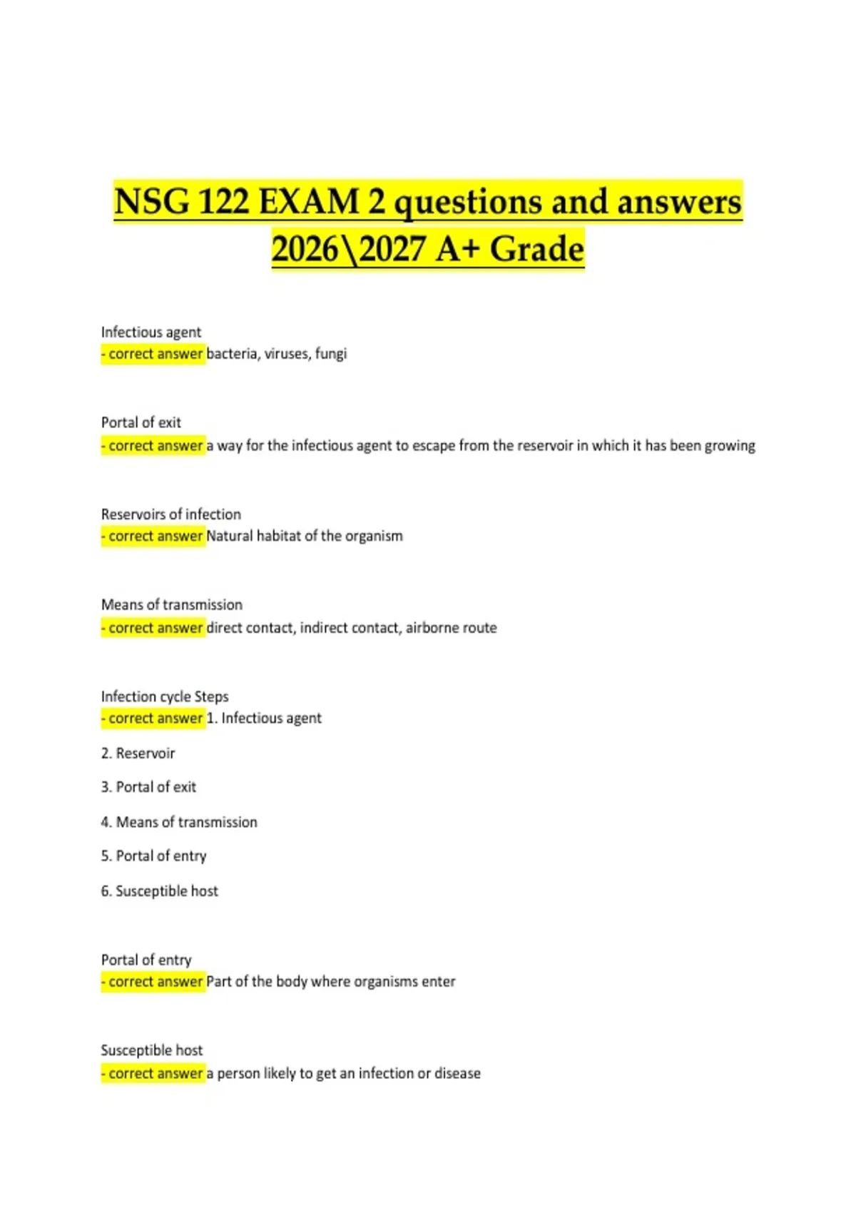 NSG 122 – Exam 2 | Verified Questions and Correct Answers | 2026/2027 A+ Grade Edition