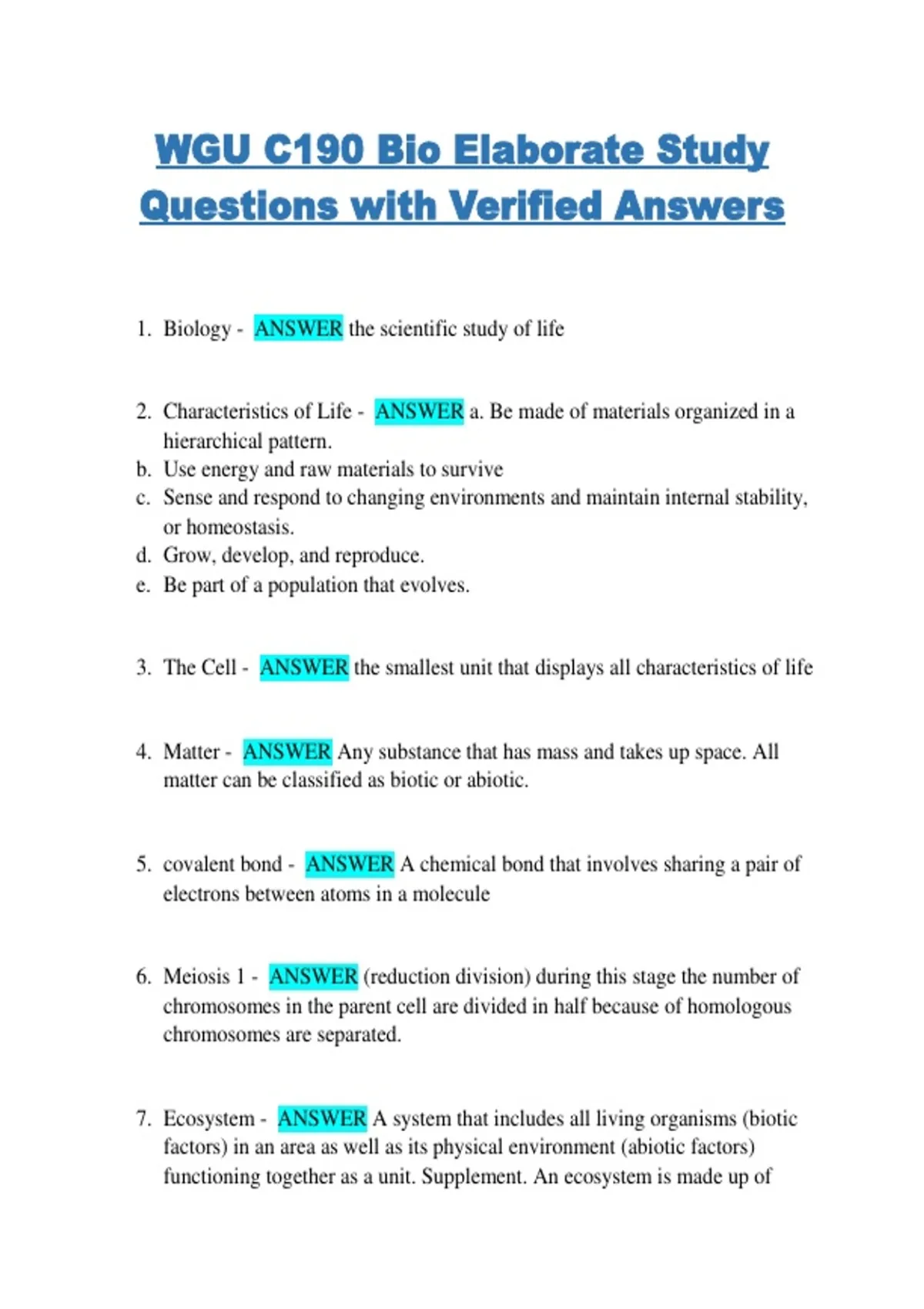 1. Biology - ANSWER the scientific study of life