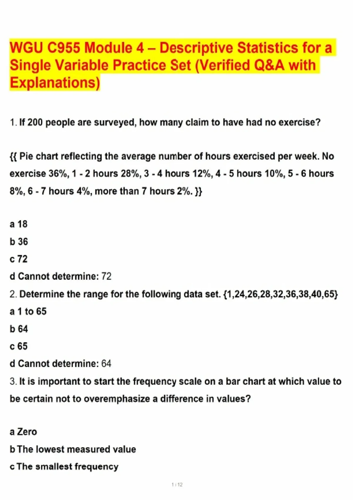 WGU C955 Module 4 – Descriptive Statistics for a Single Variable Practice Set (Verified Q&A with Explanations).pdf