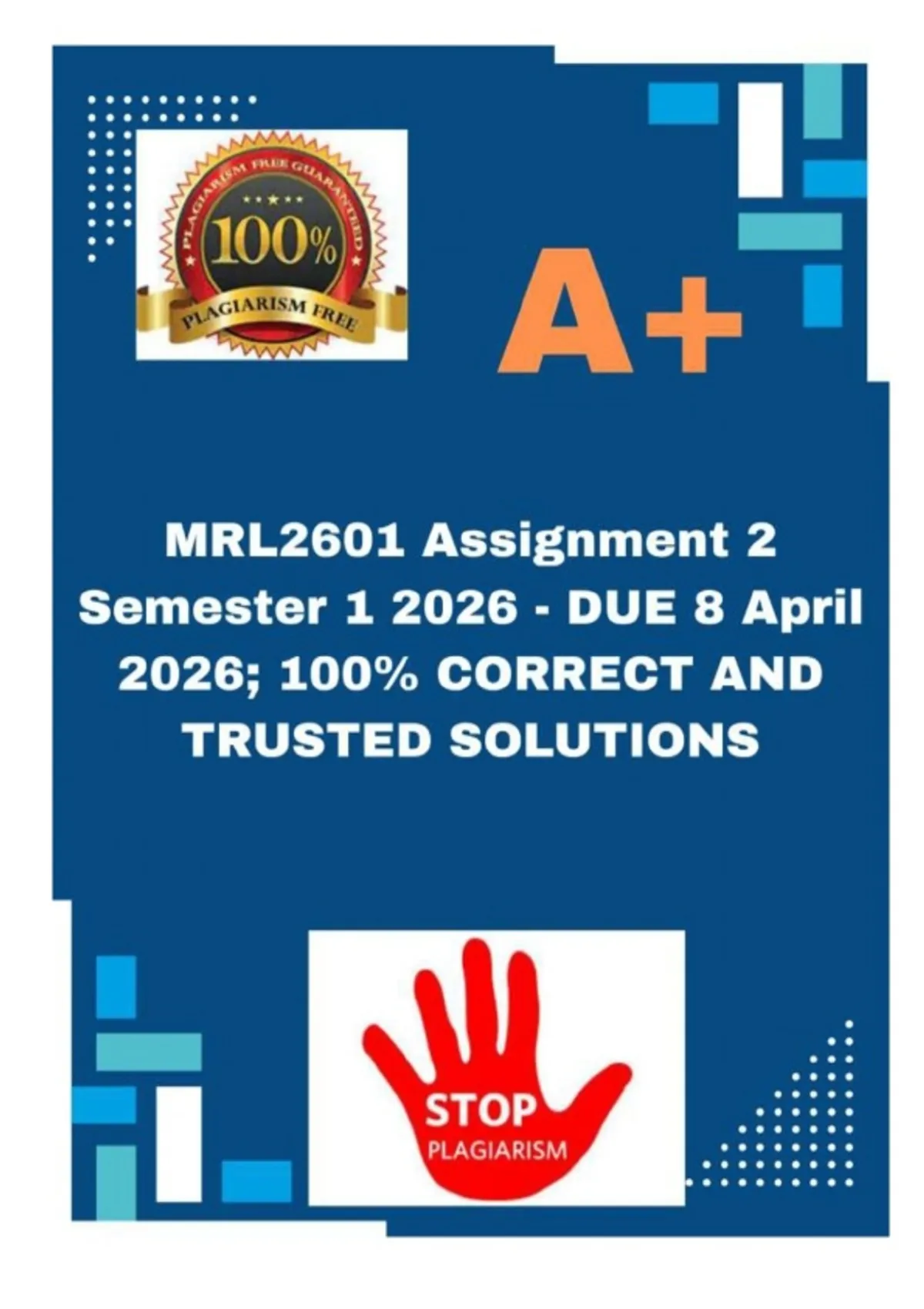 MRL2601 Assignment 2 Semester 1 2026 - DUE 8 April 2026; 100% CORRECT AND TRUSTED SOLUTIONS