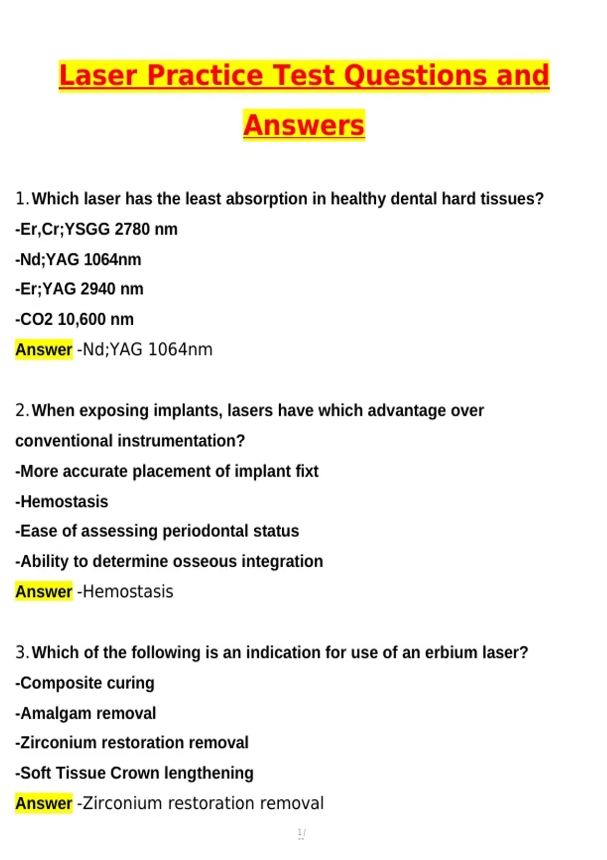 1.Which laser has the least absorption in healthy dental hard tissues?