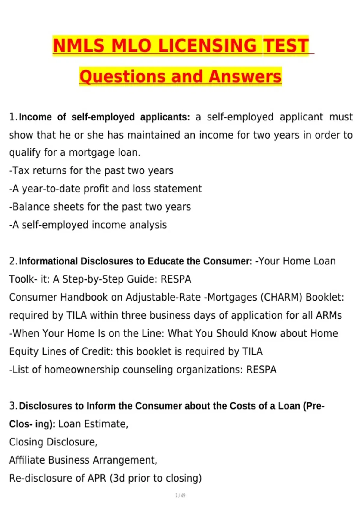 NMLS MLO Licensing Test 2026 Actual with Questions & Answers (Latest 2026 / 2027 Update) 100% Guarantee Pass (Verified Answers)
