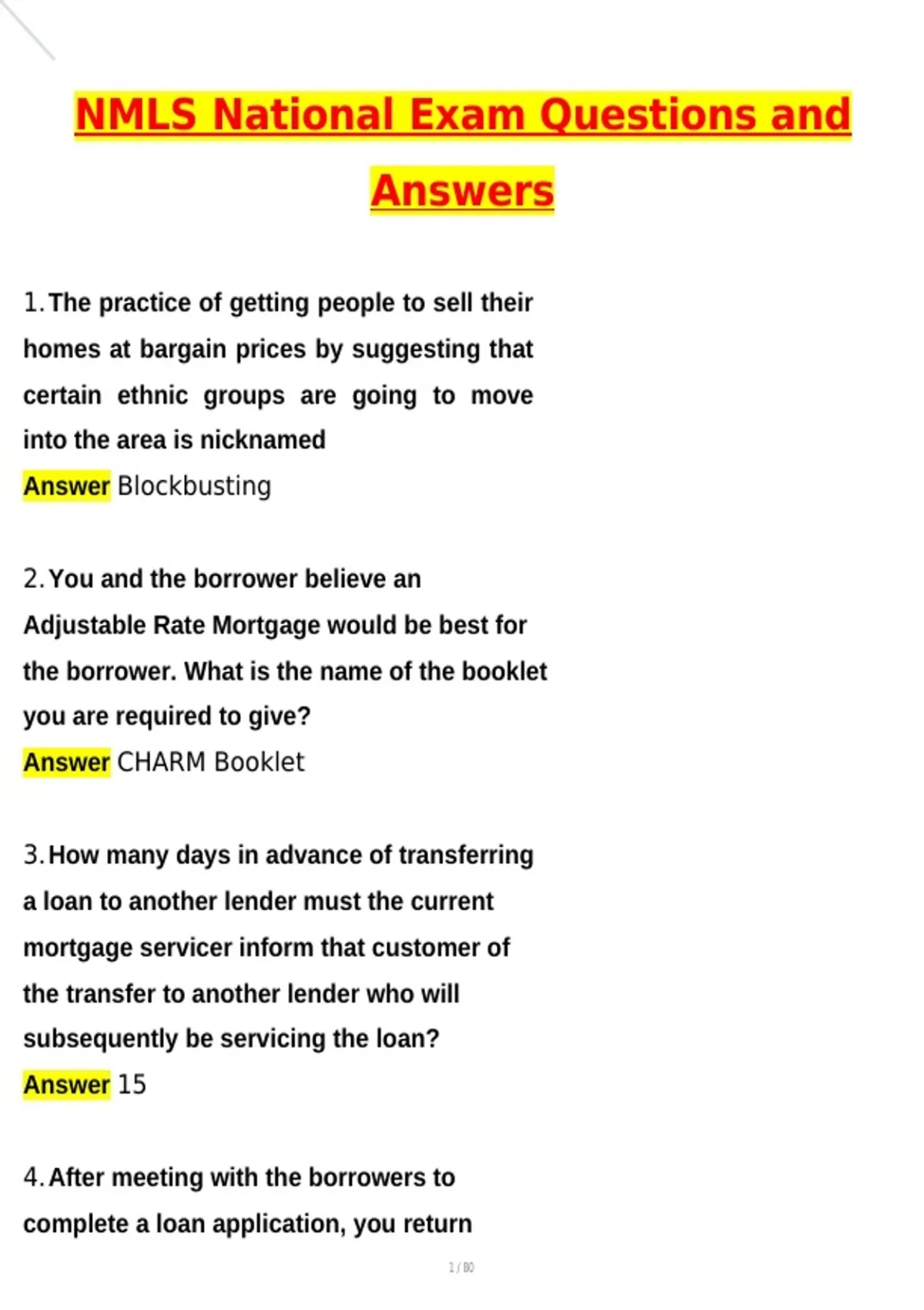 NMLS National Exam 2026 Actual with Questions & Answers (Latest 2026 / 2027 Update) 100% Guarantee Pass (Verified Answers)
