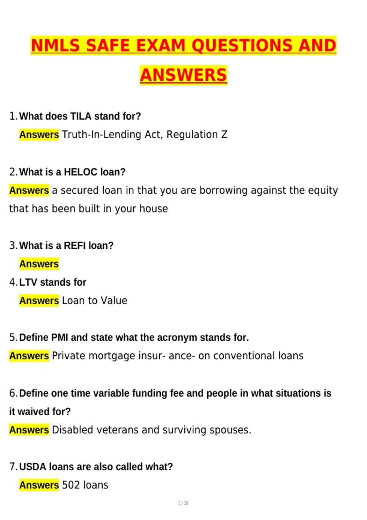 NMLS SAFE EXAM QUESTIONS AND